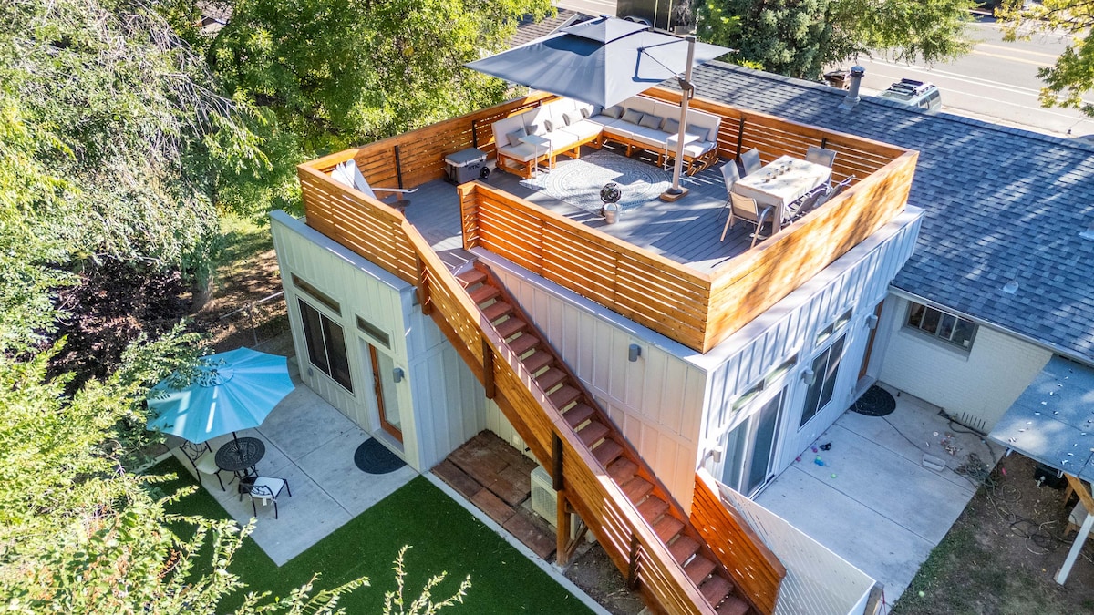 Enjoy picturesque views of the Rocky Mountains from your bedroom or patio. Explore Boulder, Denver or our world renowned mountains. Venture into our Open Space trails. Walk to the comforts of your favorite stores and restaurants. Relax at home over dinner or a drink in a comfortable setting all to yourself. ⋅300 SF Rooftop Patio with 180˚ views overlooking the Rockies ⋅650 SF interior in a new home ⋅Walk to stores, dinner, coffee or drinks ⋅Fully stocked kitchen ⋅In unit W/D ⋅Self check in