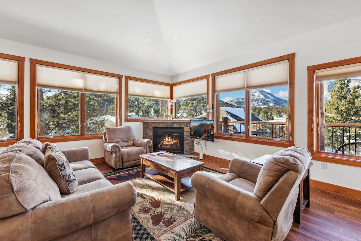 Live the mountain life! All season pet friendly home w/ high-speed internet on beautiful 2.5 acres w/ huge deck to enjoy outdoor grilling & arguably best views of Longs Peak in the Estes Park area (highest peak in Rocky Mountain Nat'l Park)! 4 miles from center of town activities & 7 miles from Nat'l Park entrance where premier hiking, fishing, horseback riding, & wildlife viewing abound (plus snowshoeing & skiing in winter)! Premier Host on other sites.