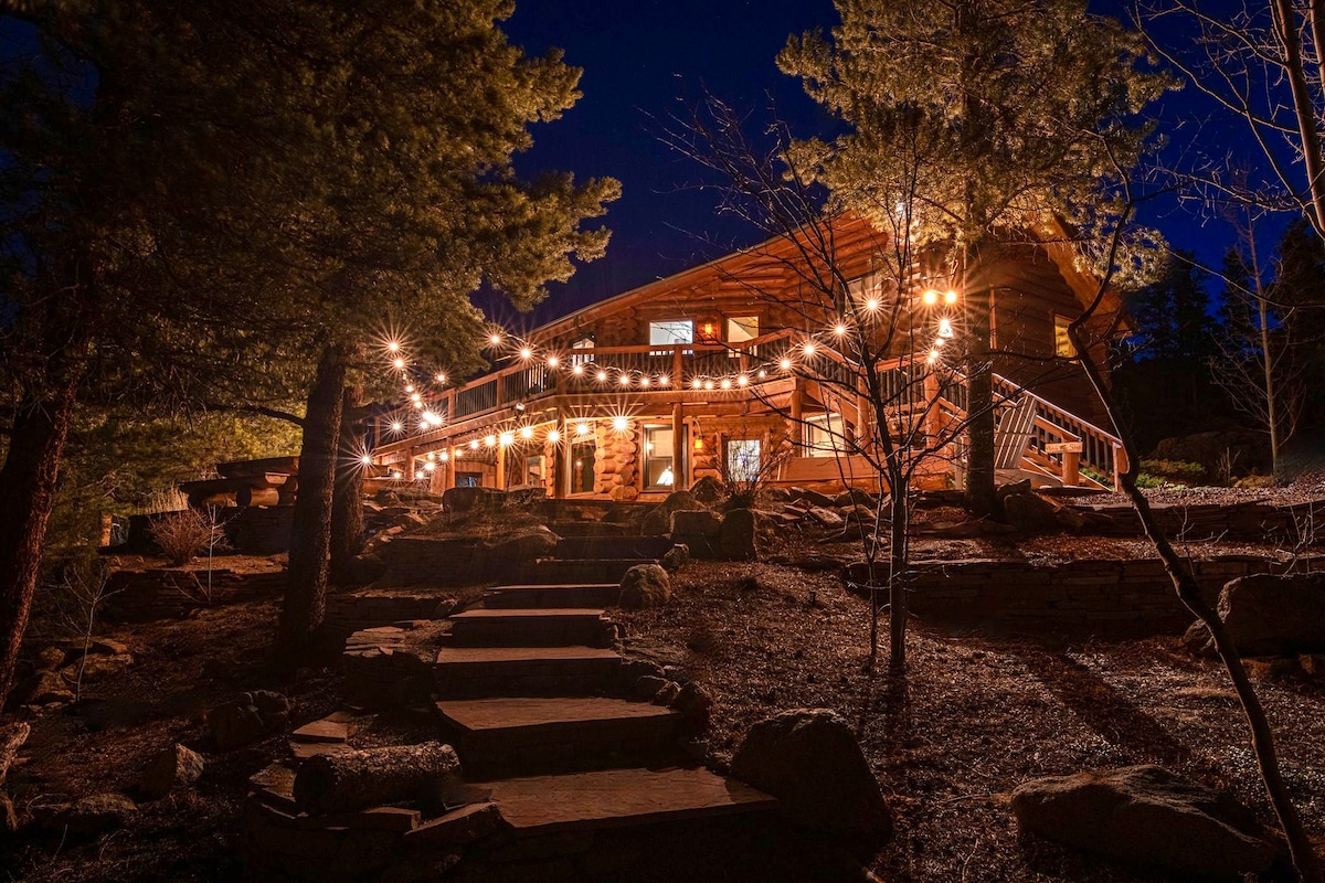 Escape to a private, secluded, Colorado Mountain "Couple's Retreat" 45 minutes from Denver! Luxury, Log Cabin on 54 acres of pristine mountain view wilderness! Run around the hot tubs (indoor & outdoor) naked! Cozy up in a 2-floor mammoth Mountain View Master with in-suite bathroom, walk-in closet, 2-person INDOOR hot tub & plush Turkish Robes. Perfect for 2 person Elopement, Honeymoon, Anniversary, Engagement or Getaway for 2 - the perfect "couples only" accommodation!