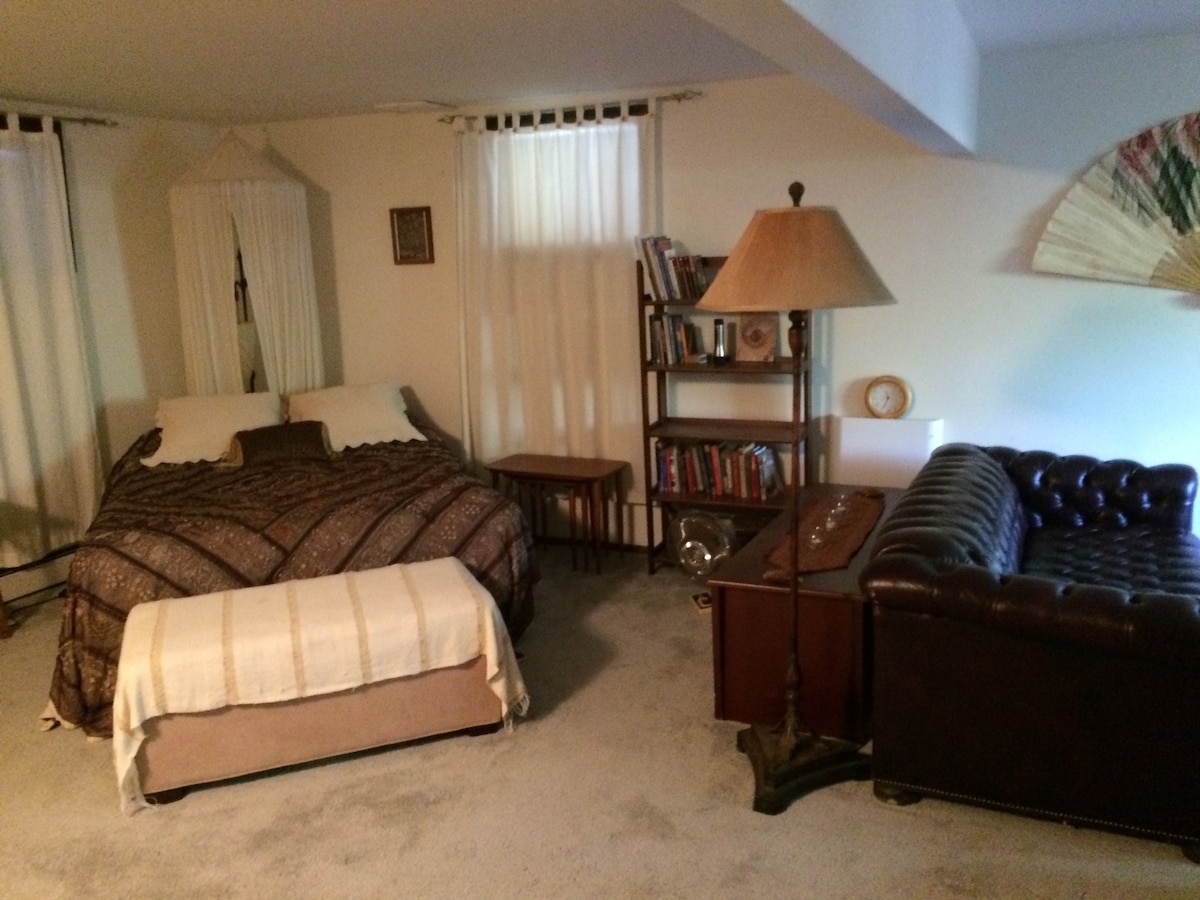 Large studio with one queen bed + basic kitchenette items. Separate entrance + private deck in quiet neighborhood. Restaurants + coffee shops nearby in an area of Boulder known as Gunbarrel. Central Boulder 15 min. Longmont 15 min. Microwave, electric kettle, coffee maker, electric skillet, blender, panini press, bar fridge (no freezer) and sink (in bathroom). Wall mount mini-split air conditioning/heat. No fragrance cleaning. No TV. EV charging available-details in other section. J1772 charger