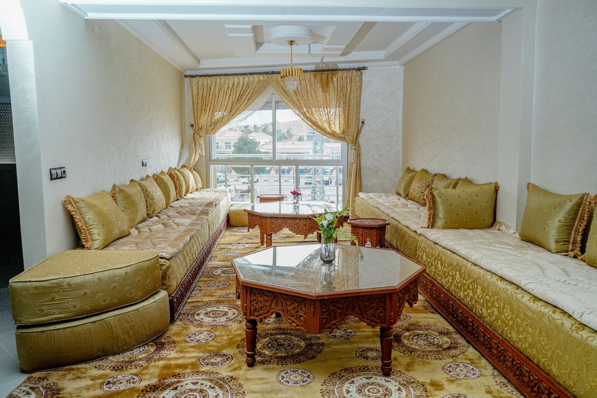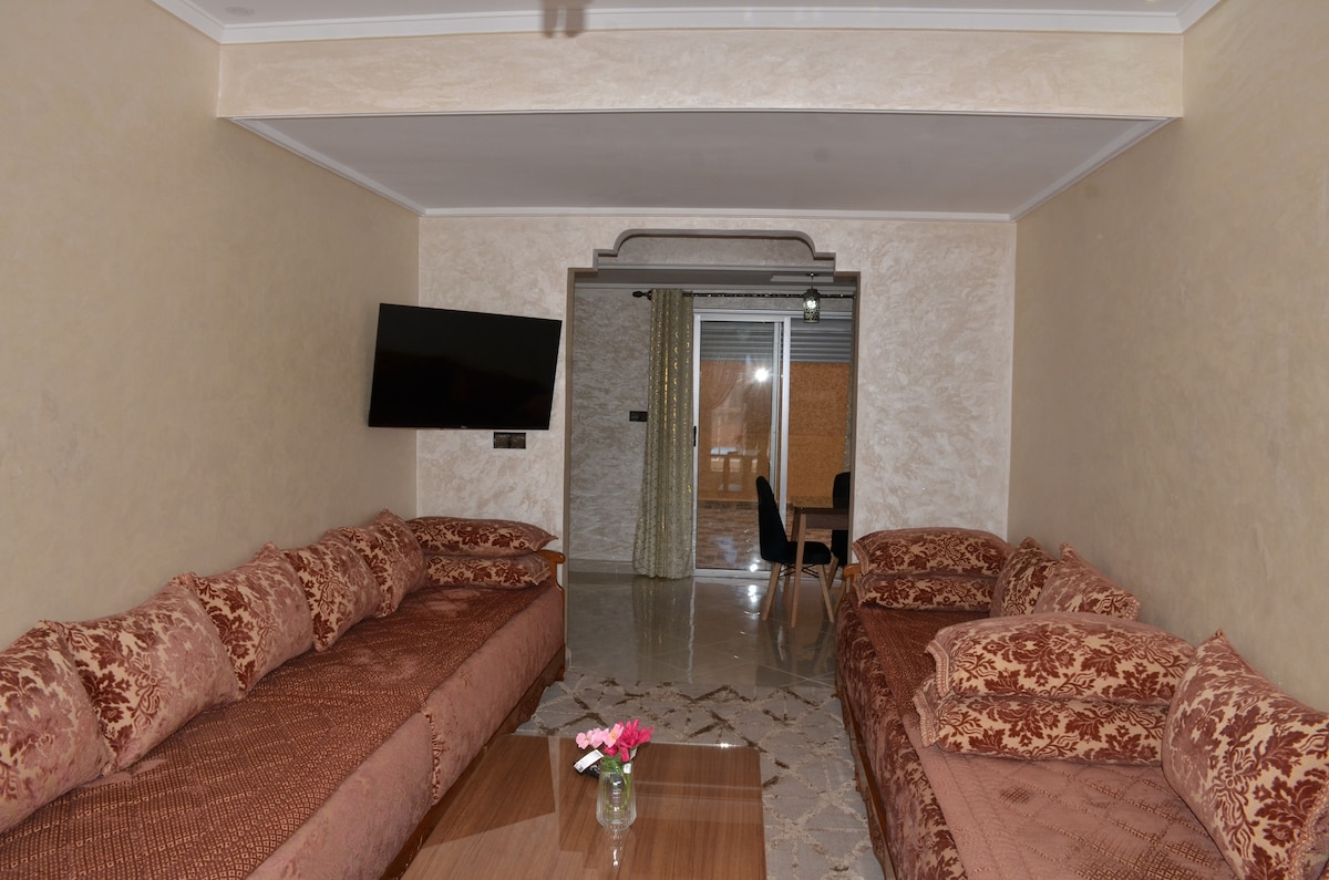 Découvrez nos appartements d'exception au cœur de Bhalil, un havre de paix à seulement 20 minutes de Fès. Avec deux chambres élégantes dotées de grands lits, vous profiterez d'un confort optimal. 2 salons : Le grand salon et le salon intime sont parfaits pour se détendre. La cuisine entièrement équipée attend vos talents culinaires. Ne manquez pas la terrasse, offrant une vue imprenable sur la ville. Un espace de sport et un grand restaurant privé complètent cette expérience unique