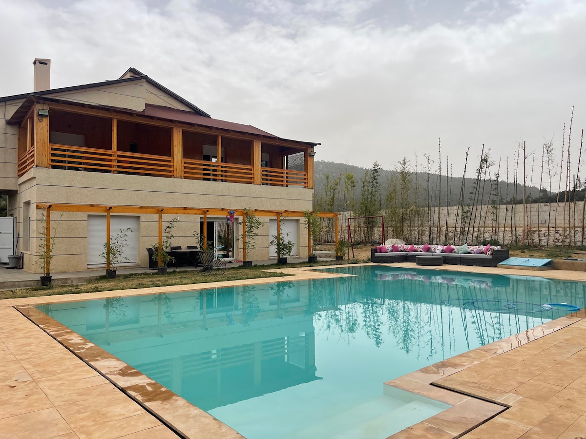 Welcome to Tazouta Harvest Haven, a peaceful farm villa in the Moroccan mountains. Swim in your private chlorine-free pool, enjoy fresh organic produce from the farm, and meet our star resident, Trump the donkey, always ready for a ride. Surrounded by rosemary fields, palm trees, and crisp countryside air, it’s the perfect escape for slowing down, soaking in nature, and experiencing the simple beauty of rural Moroccan life.
