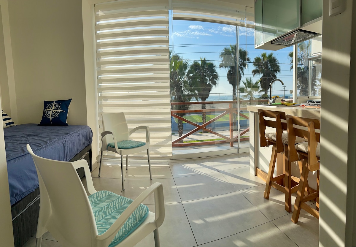 Relájate con espectacular vista al mar, piscina, parqueo seguro en condominio. Acceso al mar, a un paso de las mejores olas del Sur como Peñascal, Huayco, Santa Rosa, Los Muelles de San Bartolo. Cocina completa, microondas, refrigeradora, cafetera, hervidor de agua, Utencilios, agua caliente, Smart TV, Wifi, cama de dos plazas, un cómodo futón o sillón cama, un colchón inflable y unos binoculares para los paisajes. LEER REGLAS DE CASA.