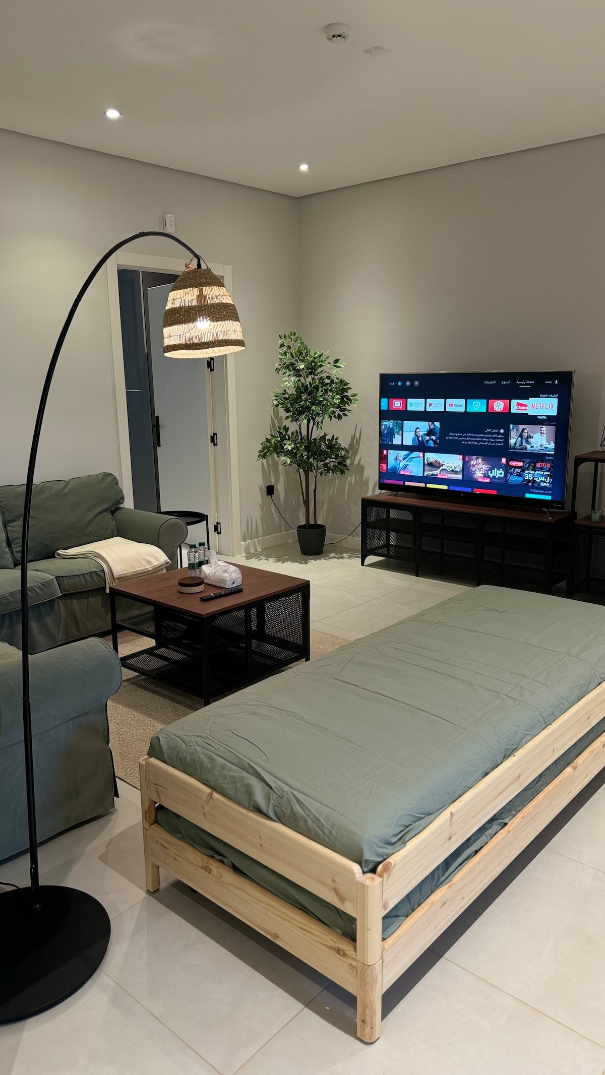 Luxury Apartment with Self-Entry consisting of a bedroom, living room, kitchen, and a fully equipped bathroom (shampoo, slippers, one-time use towels, tissues). • Besides Boulevard in Hittin, North Riyadh… The location is ideal, close to major events such as Riyadh Season, Diriyah Season, and all essential services like restaurants and shopping. Specifically: -Boulevard City 2 minute walking -Boulevard World 8 minutes walking -Arena Stadium 9 minutes walking -KAFD 12 minutes driving