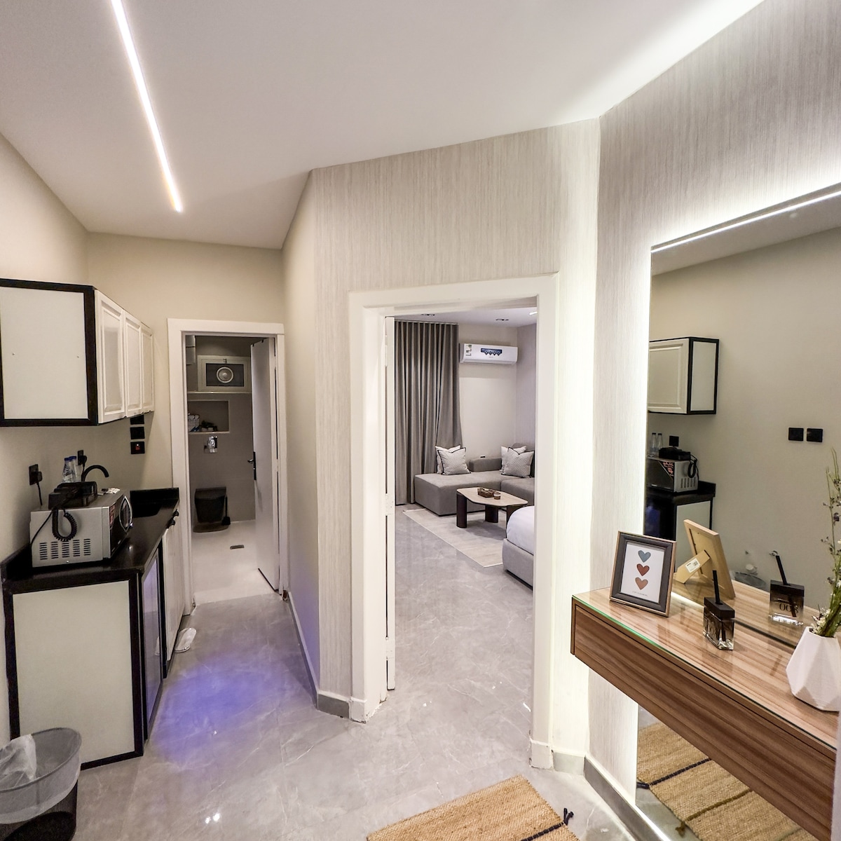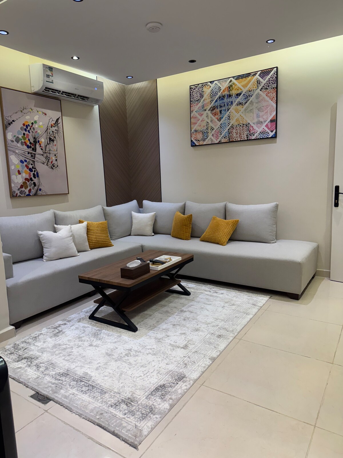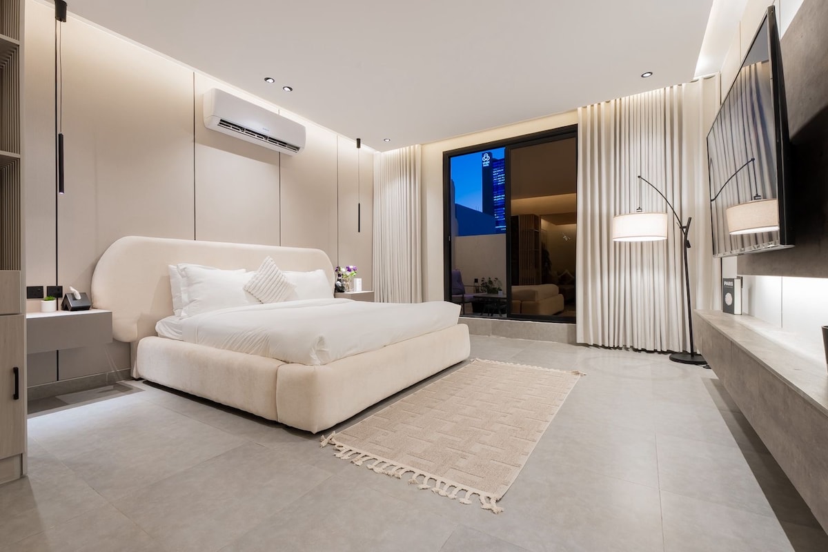 Enjoy an upscale stay in a modern apartment located in the heart of Hittin, one of Riyadh’s finest neighborhoods. The apartment is carefully furnished for maximum comfort, featuring elegant furniture and contemporary touches. 📍 Location: Minutes from Boulevard Riyadh, Sports Boulevard, Kingdom Arena, top malls, and fine dining. ✨ Features: • Modern, comfortable design • High-quality bed and linens • Smart TV & free Wi-Fi • Fully equipped kitchen • Self check-in • Free parking