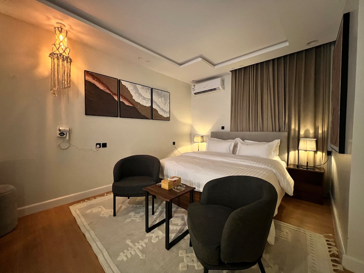 Relax and unwind having a delightful stay in this peaceful & cozy one-bedroom apt in the heart of Riyadh, while being 7 mins away from Riyadh Season attractions! The unit is self check-in equipped with fast and reliable 300 MB Wifi, Smart TV, toilet essentials , free parking and more to ensure making your stay comfortable and enjoyable.