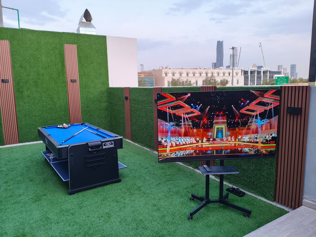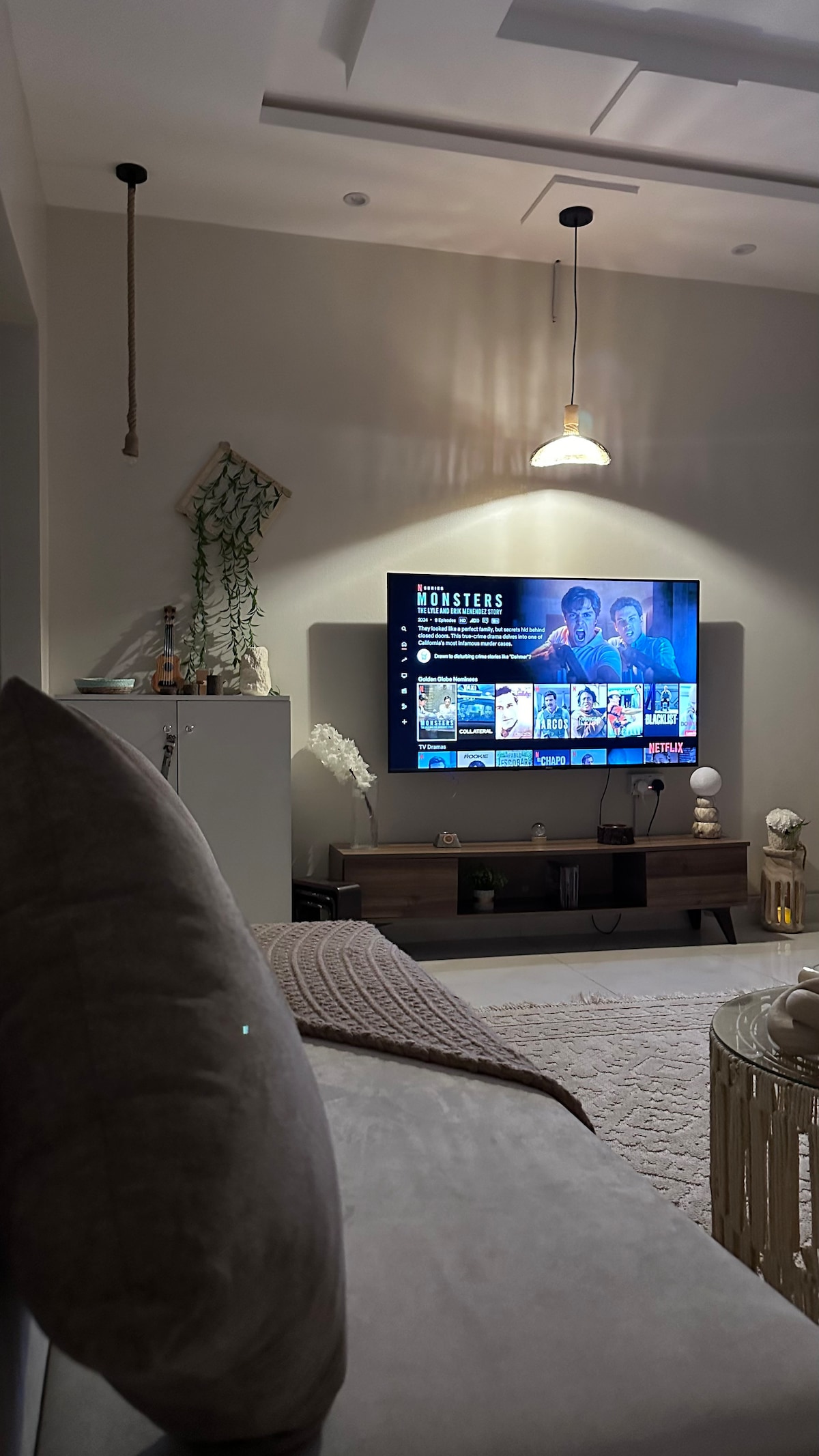 شقة تقع في حي حطين شمال الرياض مطله على بوليفارد الرياض قريب من طريق الأمير تركي الأول ومدينة الملك عبدالله الإقتصاديه والمسار الرياضي ومجمع الرياض بارك، صممت بألوان مريحة مؤثثة بأثاث مودرن. يوجد مطبخ كبير، صالة كبيره للحفلات او الاجتماعات، ثلاجة،ميكرويف، آله للقهوة ،غلاية ،فرن كهربائي. يوجد شاشة ٧٥ بوصة مع واي فاي 5G واشتراك شاهد للاستمتاع بمشاهدة ممتعة. تتميز بوجود سطح باطلاله على مدينة الملك عبدالله الاقتصادية KAFD وخصوصية تامة بدخول ذكي مع مواقف مجانية للسيارات.