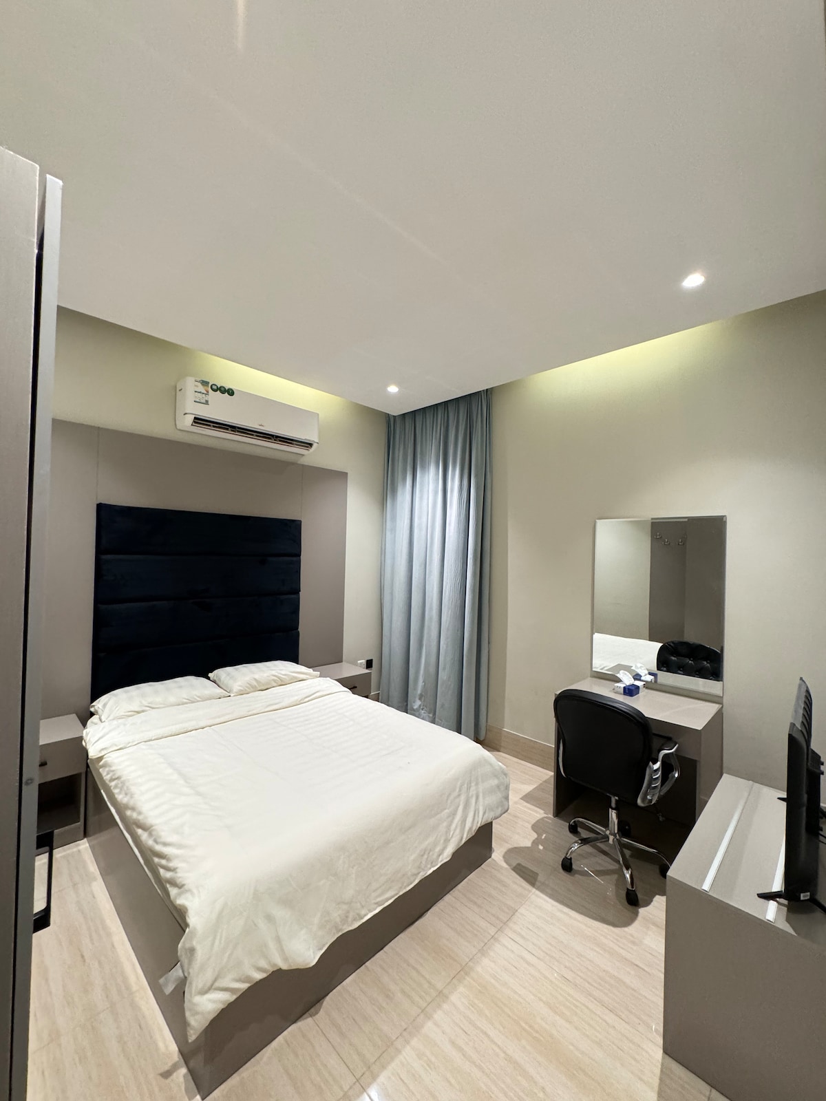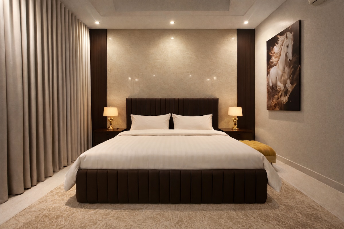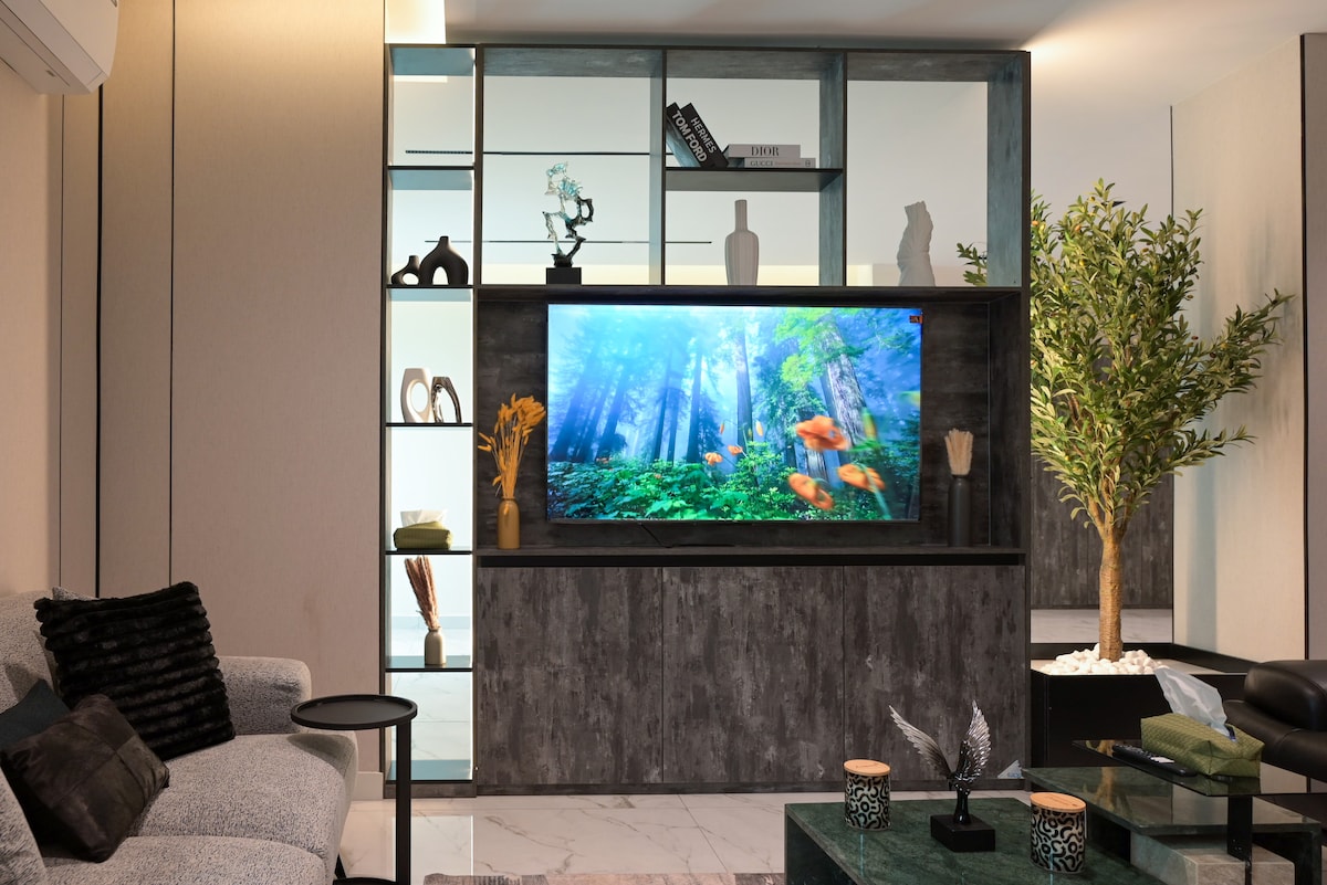 Craving a Riyadh escape? Discover your private oasis in this stylish apartment. Relax after exploring the city, or settle in for longer stays. Enjoy a fresh Nespresso and cinematic nights on the 58” screen. Located near Boulevard City, Riyadh Park, and top attractions. Need essentials? Shops and services are steps away. Staying longer? Message us for exclusive offers. Your unforgettable Riyadh stay begins here!