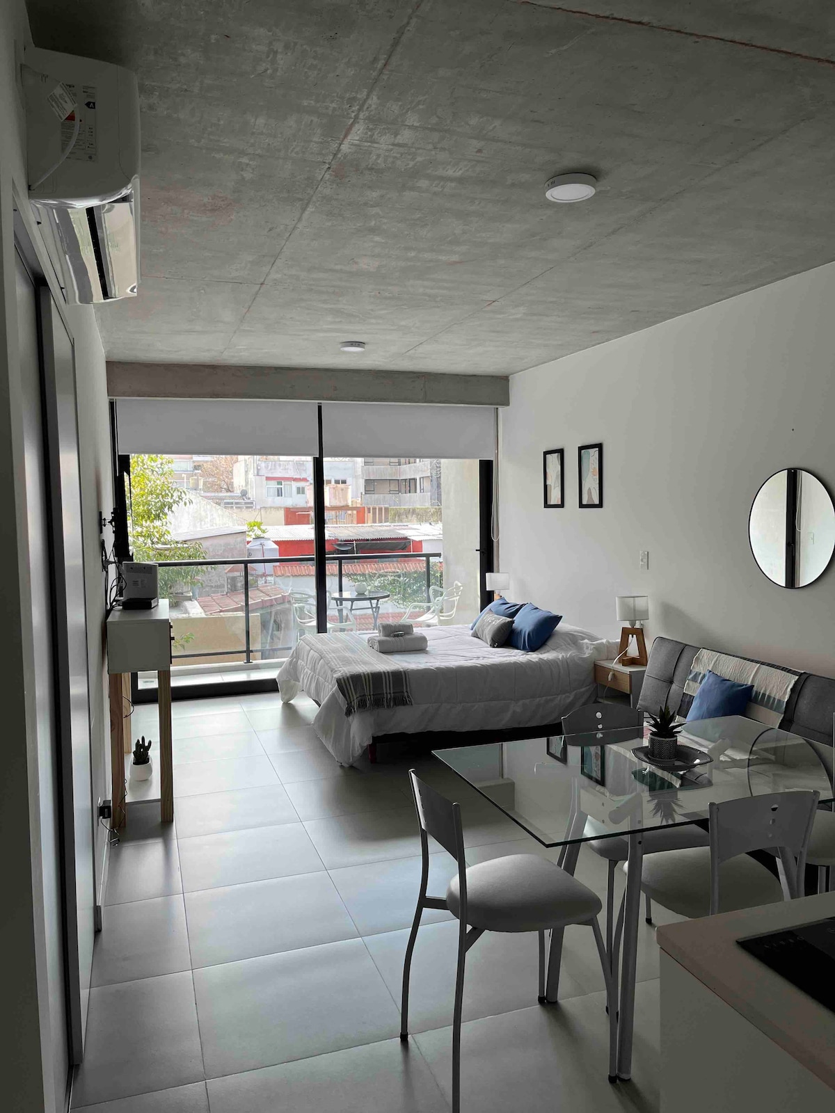 Increible y hermoso monoambiente luminoso con balcon totalmente equipado para 4 personas. Este encantador apartamento tiene todo para que disfrutes tu estadia de forma confortable !!! Posee un sommier de 2 plazas y un sillon/sofa cama para 2 personas. Amoblado con diseño, encanto y buen gusto. Aire acondicionado frio/calor, TV HD/cable, WI FI. Rapido acceso a los principales puntos de la ciudad, subterraneo linea D, Tren Mitre, Metrobus, centros comerciales y gastronomicos.