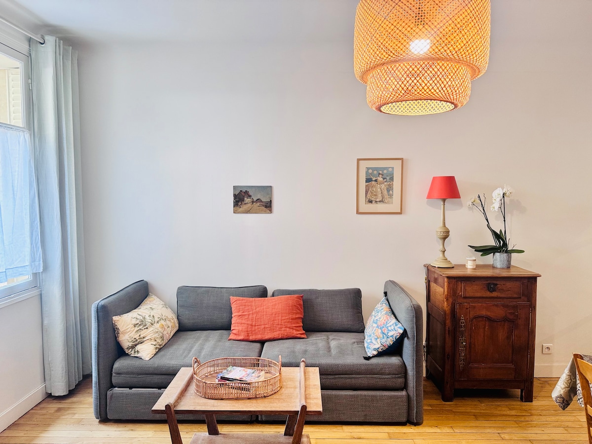 Joli appartement de 40m2 à Montparnasse vue tour EIFFEL Appart Luxe-Refait à neuf par un architecte soigné et central au coeur du quartier des artistes et théâtres parisiens. Proche gare Montparnasse et Denfert Rochereau. Très fonctionnel : Chambre à coucher avec un Grand Lit matelas neuf Et un beau séjour Wifi, ascenseur, salle de bain et toilettes indépendantes, TV, cuisine équipée, lave linge, linges fournis ...déposez vos valises & profitez de paris Parquet ancien, tableaux
