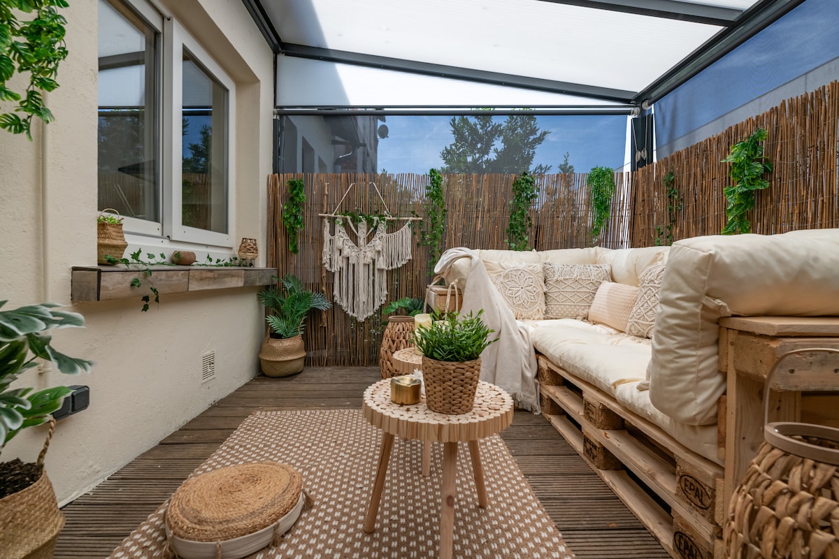庭院里的安静单间公寓-露台和私人停车场