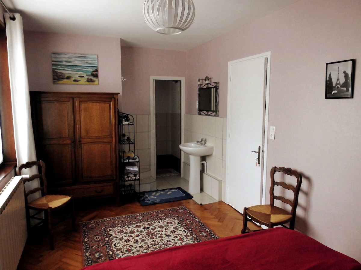 Une parenthèse de douceur, une envie de découvrir notre belle côte d'Opale. Nous vous accueillons, avec Susie notre bichon, au sein de notre maison. La chambre se trouve à l'étage, avec salle de bain et toilettes privées (ceci permet une totale autonomie et indépendance par rapport aux occupants de la maison), une télévision, un lit de 160x200, linge de qualité (Descamps) et un plateau de courtoisie. Petit déjeuner continental (Pain, brioche, gâteau, confiture, yaourt sont faits maison) inclus