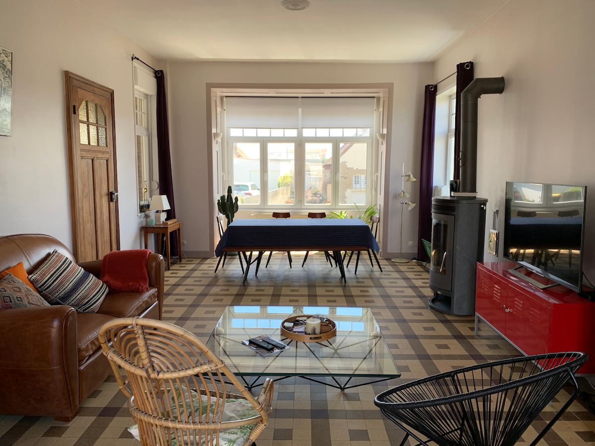 Profitez d'un séjour sur la côte d'Opale, nous serons ravis de vous accueillir dans notre maison. Vous disposez d'une chambre à l'étage avec sa salle d'eau privée et petit déjeuner compris. Une terrasse partagée , petite vue mer . Ambleteuse est un village niché entre la Baie de la Slack, le Cap Gris Nez, Cap Blanc Nez, ses chemins de randonnées balisés ( Gr120, EV4 ) La digue promenade vous donnera une vue sur le Fort, sa plage, ses rochers. Restaurants et plage à pied de la maison.