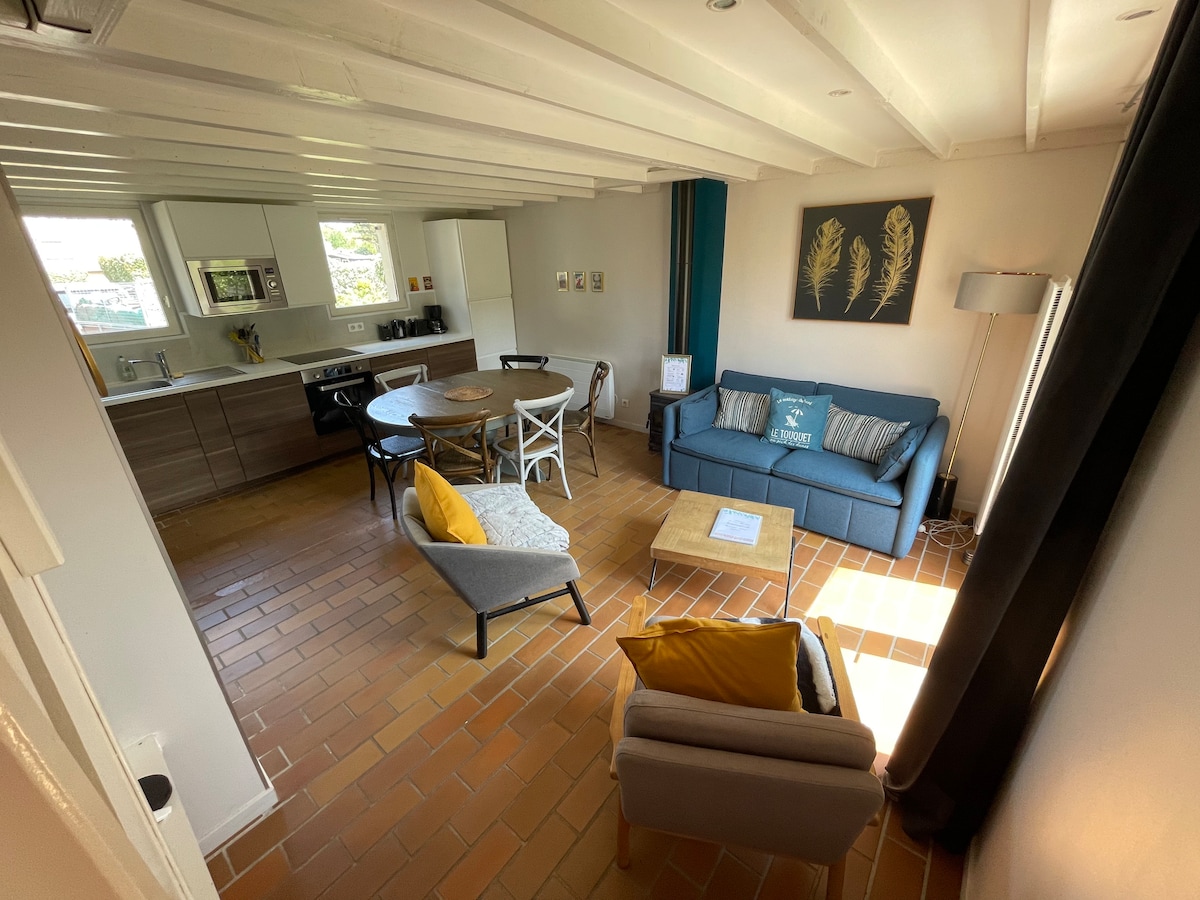 Niché à quelques minutes de la plage et de Nausicaa, ce cottage mêle élégance, tranquillité et confort. Sa cuisine moderne équipée s’ouvre sur un coin salle à manger/séjour chaleureux, sublimé par un escalier en bois et un canapé ultra confort. La lumière naturelle crée une atmosphère douce et apaisante. Idéal pour une escapade en bord de mer, situé à proximité de la plage, des pistes cyclables et du sentier du littoral pour de belles balades sur la Côte d’Opale. Abri vélo à disposition.