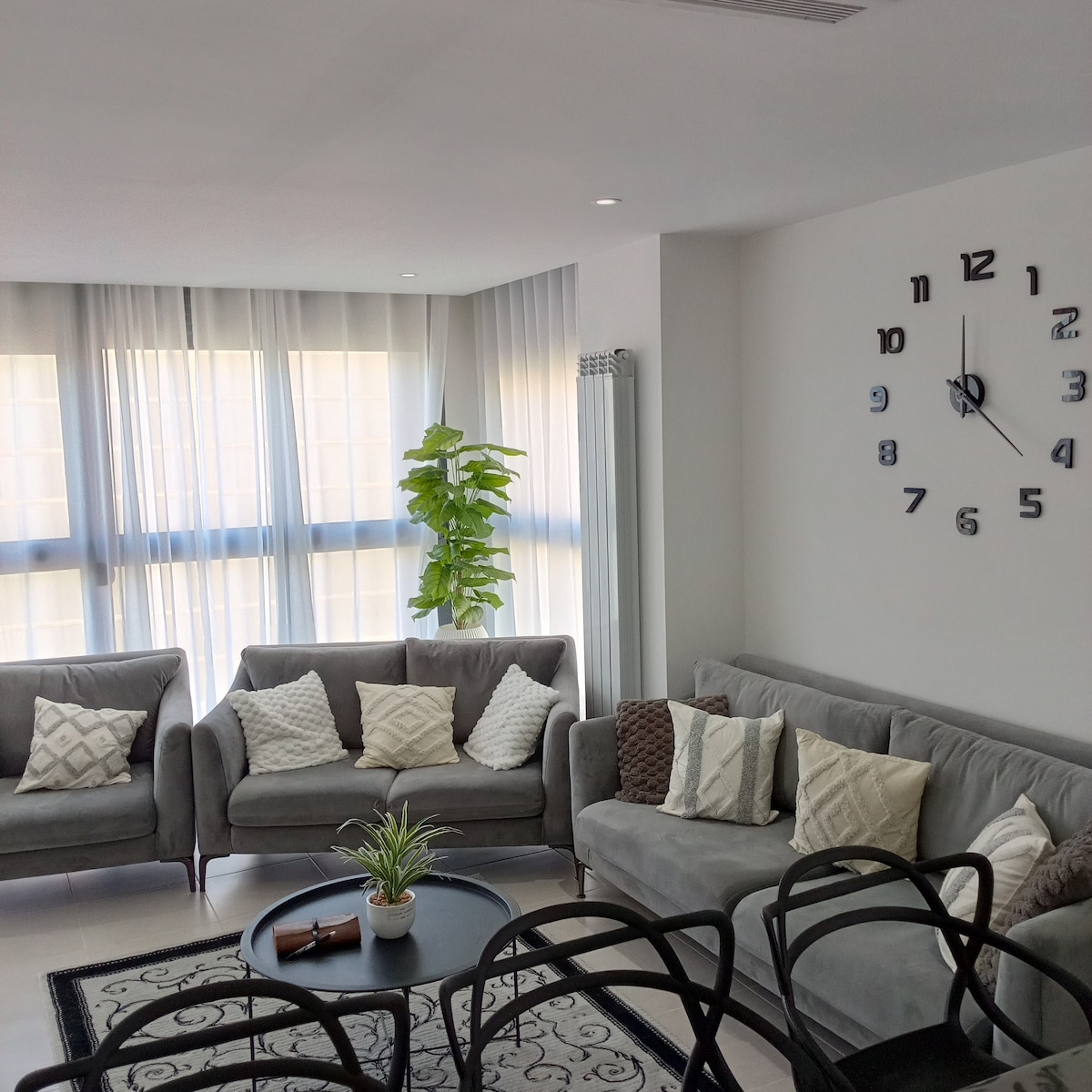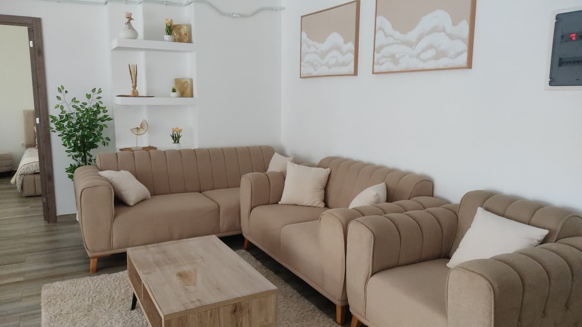 Chers Futurs Locataires, 😊 Nous vous proposons un appartement F3 Cosy et lumineux pour 4 personnes en location courte durée dans la superbe Résidence privée de *Riad City* Situé à 20min de l’aéroport✈️, 18min de la plage la plus proche 🌊 et 30min d’Alger centre 🏙️ . La Résidence est équipée de: Parking privée / Caméra de surveillance avec gardiens 24/24h / Aire de Jeux / Supérette / Restaurant / Mosquée / Salle de sport non mixte / Stade de foot . Bienvenue à vous 😊