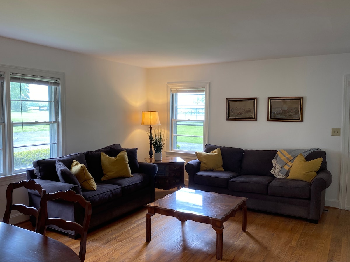 The cottage at Hickory Manor offers incredible views, a perfect location, and a modern set up to insure your stay is perfect. Surrounded on both sides by horse farms, experience a true KY visit . House consists of a large open floor plan, master bedroom with attached full bath, a queen room and 3rd bedroom with 2 twin beds. An air mattress is available for 2. Conveniently located 13 miles to the KY Horse Park, 14 miles to downtown Lexington city center, 19 miles to Bluegrass Airport
