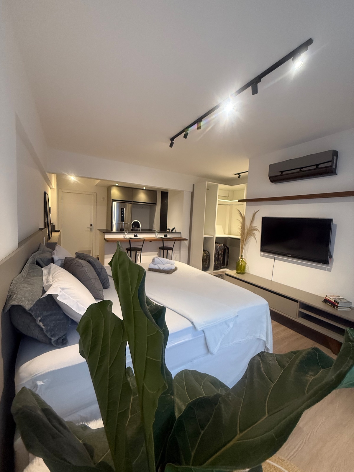 Studio NOVO, com garagem privativa e detalhadamente pensado para atender hóspedes que buscam conforto e praticidade em suas viagens de trabalho ou lazer. O local possui uma cozinha completa, churrasqueira, ar condicionado, máquina lava e seca, Tv 50´, cama queen e vários outros itens. Com uma localização central, temos acesso a Hipermercados, Farmácias e Academias. Ainda, estamos próximos da rodoviária, da estacão de trem e do Centro de Eventos Fenac.
