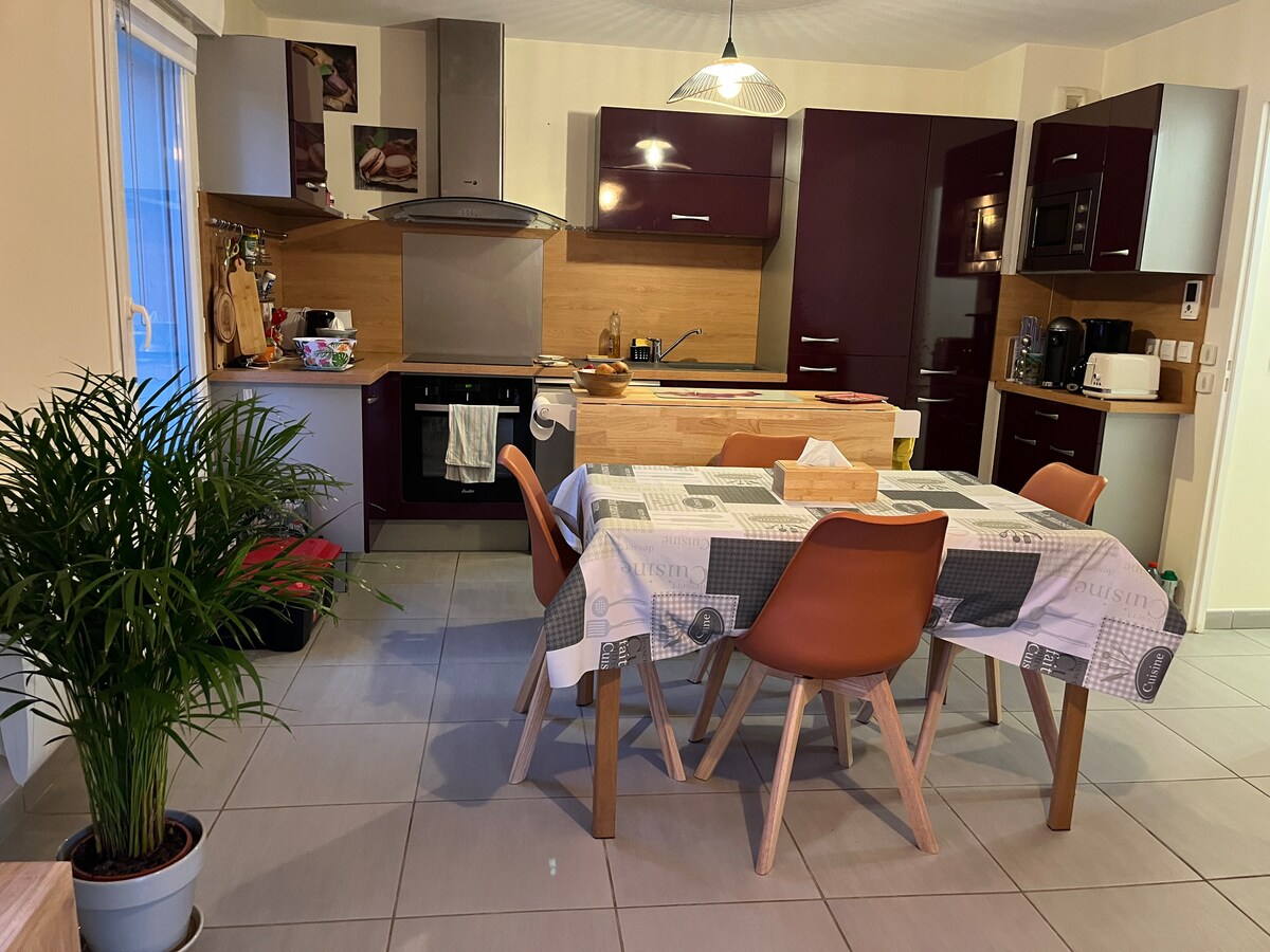 At the crossroads of Maurienne, Belledonne, Chartreuse and at the foot of Bauges, come and recharge your batteries in the peaceful valley of Val Gelon. With family or friends, the accommodation offers friendly and warm spaces to share good times, while preserving everyone's privacy thanks to its 3 bedrooms with bathrooms. For your comfort, a laundry room is also available. The garden is a shared space where you can relax while admiring the view.