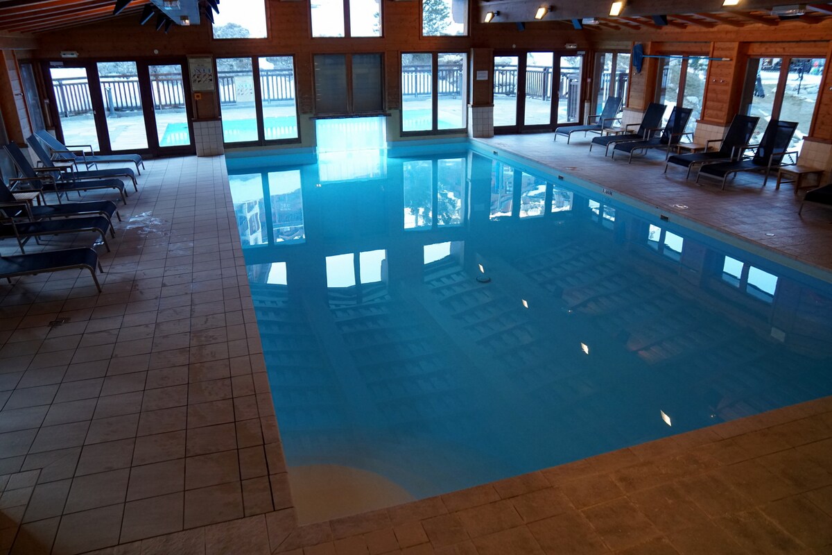 带泳池和水疗中心的舒适单间公寓,距离斜坡100米
