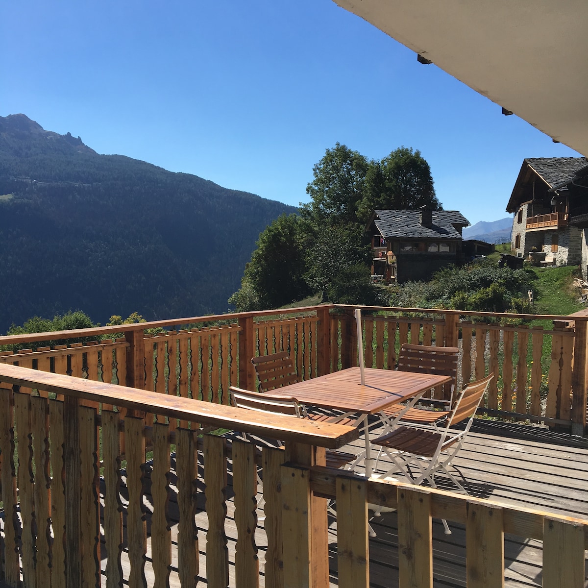 Chalet 150m2 sur terrain 2000 m2 VERSANT SUD,dans petit village à 1100 m,au-dessus de Bg-St-Maurice, ANIMAUX acceptés,vue PANORAMIQUE,à 7 min en voiture du funiculaire pour LES ARCS (SKI à 10min) Ski rando possible au chalet l'hiver si enneigement 2 terrasses-barbecue Arrivée autonome possible,contacts par messages ou tel à tout moment,ou en direct WIFI gratuit,TV Lits non-faits,location linge de lit et bain possible sur place Chauffage sol/cheminée