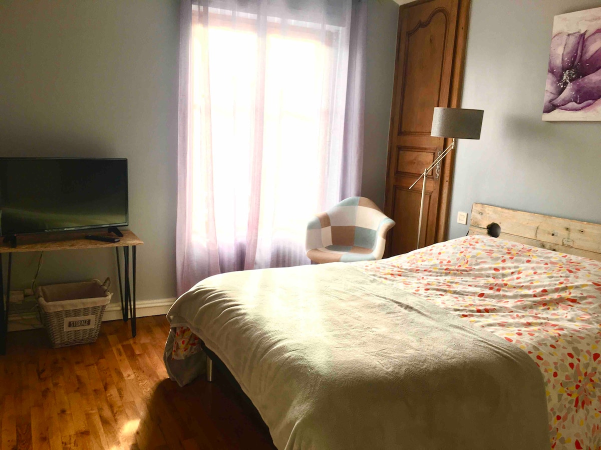 Pour une escale sur la route des vacances, une nuit entre 2 déplacements professionnels ou un weekend à Bourges, nous vous accueillons dans la Petite Chambre, pour une bulle d'intimité dans un décor cocooning. Notre bibliothèque de BDs et notre billard seront là pour donner un petit plus à votre séjour chez nous. Nos animaux font partis de la maison, mais ils n'ont pas accès à la chambre. A bientôt ! PS. Possibilité de réservation sur l'année pour les étudiants en alternance. Nous contacter.