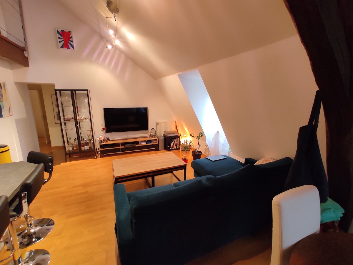 A 6km de Bourges, cette location refaite à neuf est installée premier étage d'une maison occupée par la propriétaire.. Quartier calme. Une ligne de bus gratuite vous permet d'atteindre centre ville de Bourges en 20mn. Dans la zone commerciale proche vous trouverez de nombreux magasins, supermarchés et restaurants .