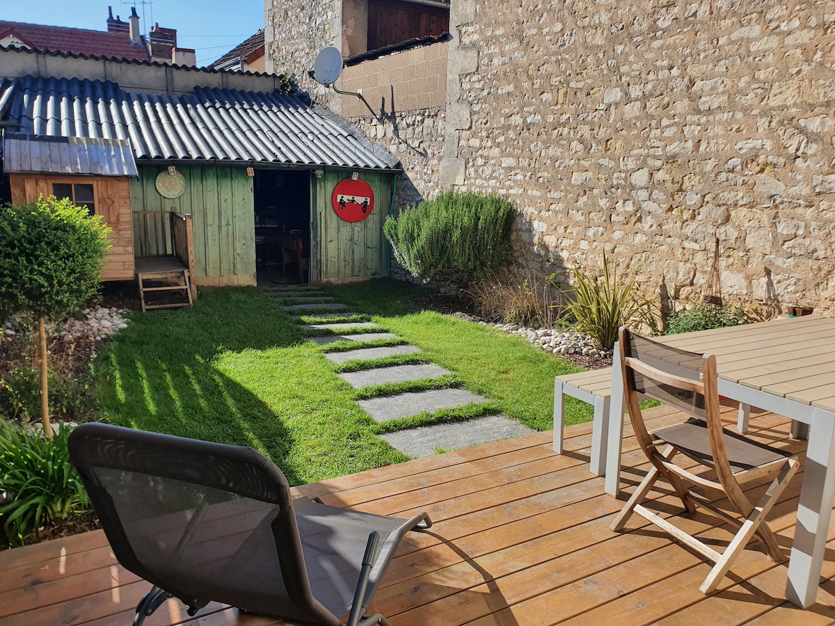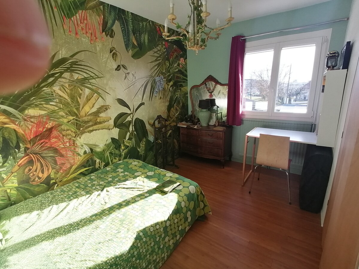 Venez passer un moment de détente dans ma maison au style cocooning et cosy. Située dans un quartier calme mais à la fois proche de la ville. Vous apprécierez le style tropical du jardin qui vous donnera l'impression d'être à la campagne. Vous aurez le choix entre 3 terrasses, toutes différentes, pour vous relaxer autour d'un verre dont l'une entourée de palmiers 🌴... L'été vous pourrez vous allonger sur les transat dans le jardin exposé plein sud. Le centre-ville se trouve à 5mn en voiture.