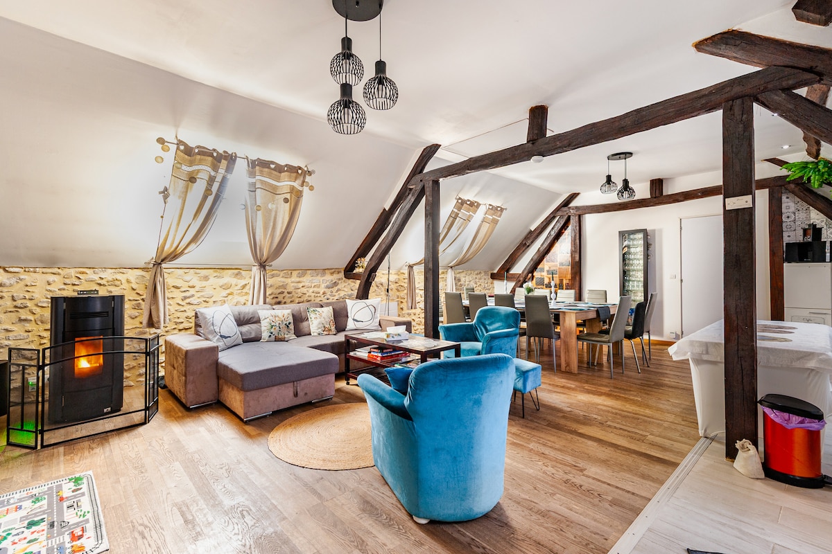 Profitez en famille de ce logement tout équipé au coeur de la sologne.Salle de jeux pour toute le famille (flipper,babyfoot...)Espace de vie spacieux ainsi qu'un beau jardin avec terrasse & salon, piscine , aux portes des chateaux de la loire Chambord,Cheverny,Blois...proche zoo de beauval, center parc.Accès autoroute 10 mins. Une suite parentale lit 140 et 90,2eme chambre lit 140 avec dressing,lit bébé,lit 90 pliant, mezzanine canapé convertible. Nouveauté 2023! Piscine avec plage pour mi mai