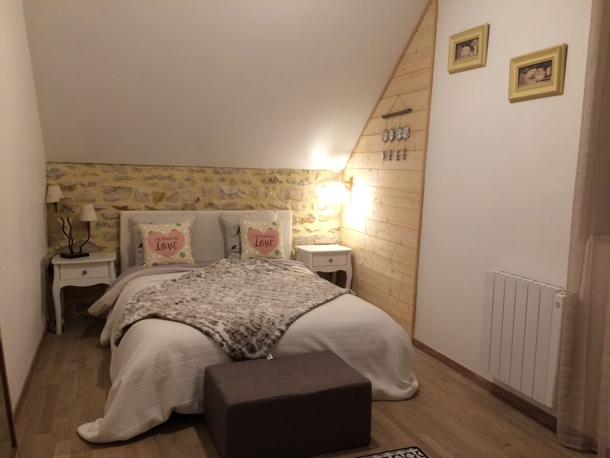 Gîte situé dans l'aile d'une demeure du XVIIIè, aux contreforts du Sancerrois, du Pays Fort et de la Champagne berrichonne. Vue jusqu'à la cathédrale de Bourges. Maison de famille au milieu des vignes. Cuisine équipée, salle de séjour, 3 chambres à l'étage, salle de bain. Je propose petits déjeuners et diners avec des produits "maison" Accès à une belle piscine, au parc avec jeux d'enfants, animaux.. La demeure dispose d'un autre gîte et d'une chambre d'hôtes et d'un loft visibles sur airbnb