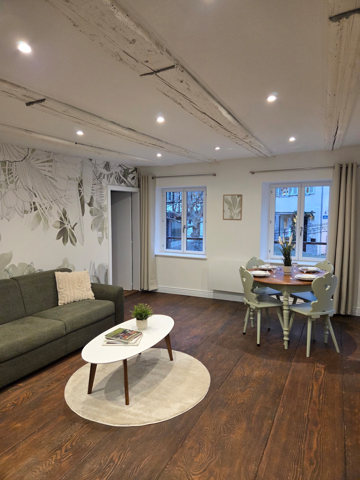 Enjoy a charming apartment in the heart of Obernai’s historic center, offering stunning views of the belfry, the tourist train, and the famous Christmas market! Located on the first floor of a traditional Alsatian house built in the 1500s and fully renovated, it combines old-world charm with modern comfort. Restaurants, shops, and all amenities are just steps away, and the tourist office is right next to the apartment. The Yonaguni Spa is a 10-minute walk from the accommodation.