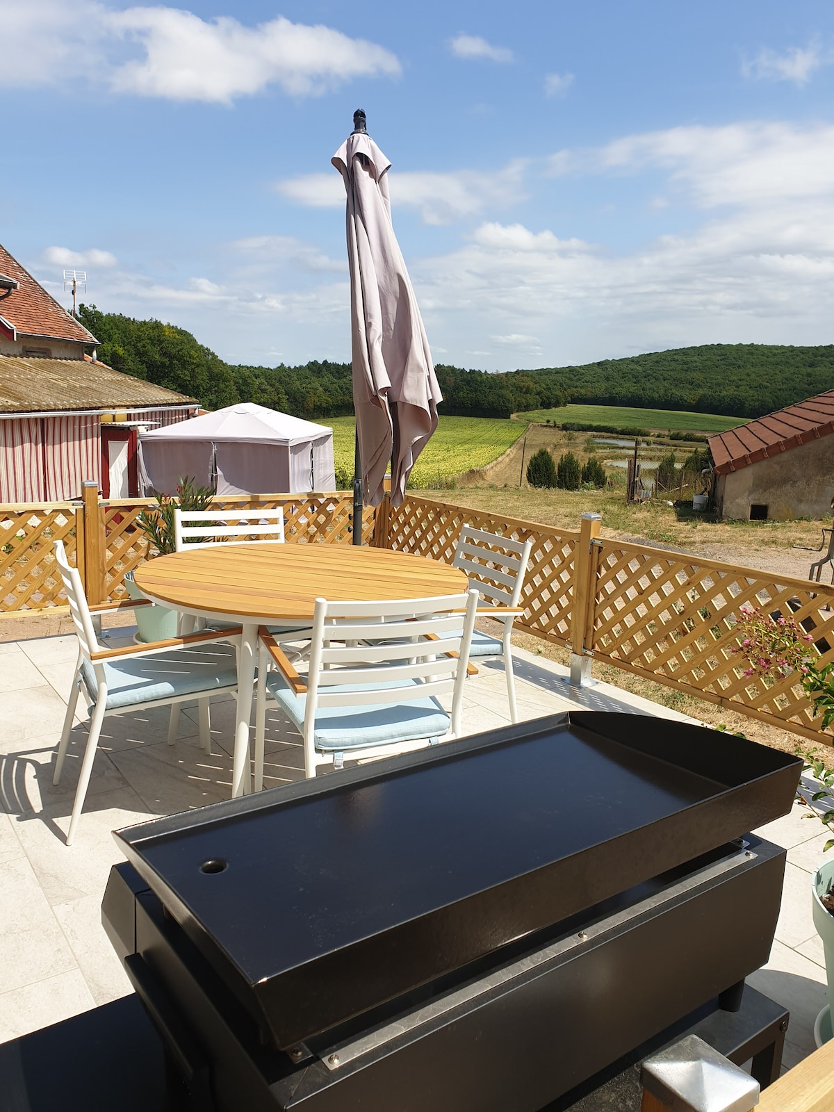 Notre gîte a été rénové en partie par nous même afin d'en faire un lieu accueillant et reposant. Cette ancienne grange où mon grand-père puis mon papa y ont pressé la vendange, de cette époque il reste la vis du pressoir qui trône fièrement au centre de la pièce de vie. Le charme de l'ancien côtoie le confort des matériaux modernes, nous espérons que vous trouverez en ce lieu un havre de paix pour vous ressourcer. Notre petit hameau se situe en pleine campagne bourguignonne. Parking