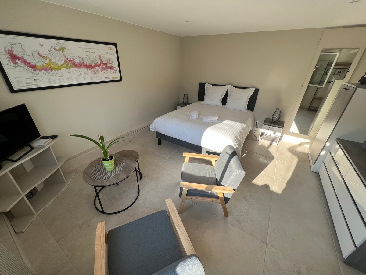 Détendez-vous dans ce logement unique et tranquille. L'appartement se situe au rez-de-chaussée d'une belle maison avec une entrée indépendante. Il s'agit d'un studio de 32m², pouvant accueillir 2 personnes, entièrement rénové et offrant de belles prestations. Il se situe à seulement 5 minutes à pied du vignoble Bourguignon. Découvrez cet hébergement plein de charme, qui ne manquera pas de vous séduire de par son emplacement et son calme. Au plaisir de vous accueillir très prochainement.