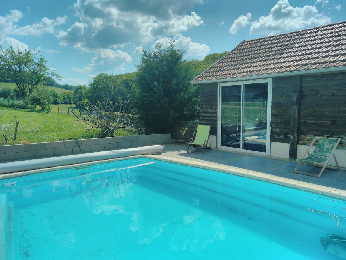Déconnexion assurée ! Ce logement paisible offre un séjour détente pour toute la famille ou entre amis. Petit chalet cosy rénové sur proprieté, avec piscine, au beau milieu de la campagne. Commerces à 3,5km. lit 2 places en mezzanine+ petit canapé dépliant au RDC (2 enfants petit gabari). Réseau faible. PAS DE WIFI. PAS DE TELEVISION. Caméra de surveillance donnant sur la porte d'entrée de la maison. recharge voiture electrique (charge lente) Location de velos possible : 5€/vélo/ jour 2 🐈