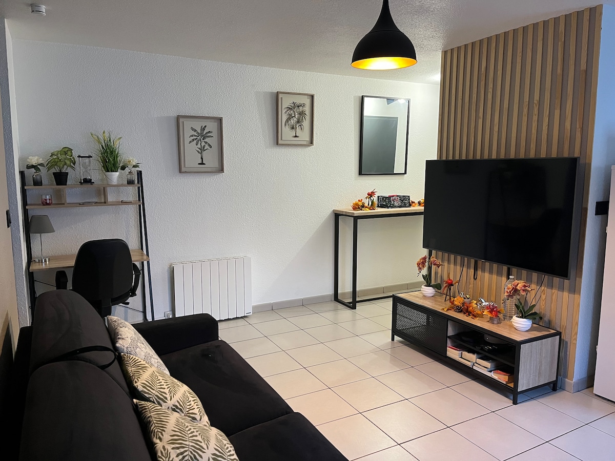 Bourgoin jallieu à proximité du centre ville appartement T2 entièrement rénové comprenant salon-séjour, dégagement avec rangements, cuisine indépendante toute équipée, 1 chambre avec placard et une salle d’eau avec WC. Le bien dispose d’une terrasse privative de 22m2 avec 1 place de parking. Environnement calme. Belle exposition. Proche des commodités (gare, commerces, cinéma, accès autoroute…). Equipements: store banne, barbecue, télé, bureau, machine à laver, lave vaisselle, frigo, cafetière…