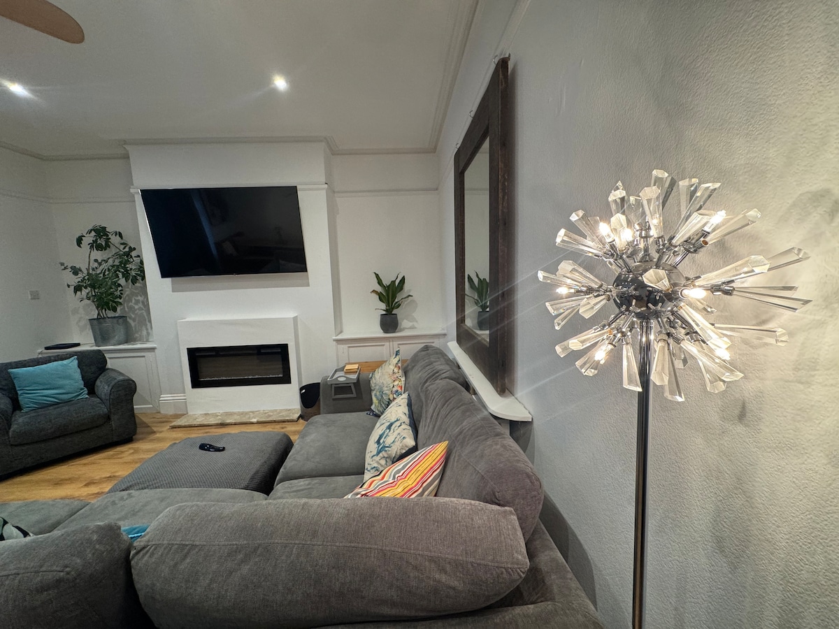 Welcome to our cosy one bedroom house located in the heart of Bournemouth! This charming space is pet friendly and perfect for couples. The house is situated in a quiet residential area five minutes from the beach close to Westbourne and Canford Cliffs villages offering multiple bars and restaurants. You'll find a comfortable bedroom with a king bed, a fully equipped kitchen, and a modern bathroom with a shower. The living area is bright and airy, with large windows and comfortable seating.