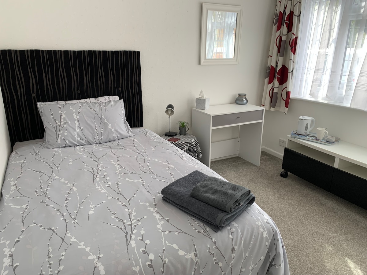 The Annexe is 15 minutes drive from Poole town centre and the local beaches. There is a bus stop at the top of the road which serves the local area but a short walk up the hill to the main road is an abundance of buses which can take you to Bournemouth, Christchurch, Poole & beyond. A selection of take away restaurants are close by along with a CoOp supermarket, Waitrose & an Iceland. On your arrival there will be a welcome pack of fresh bread, milk, cereals, butter and tea and instant coffee.