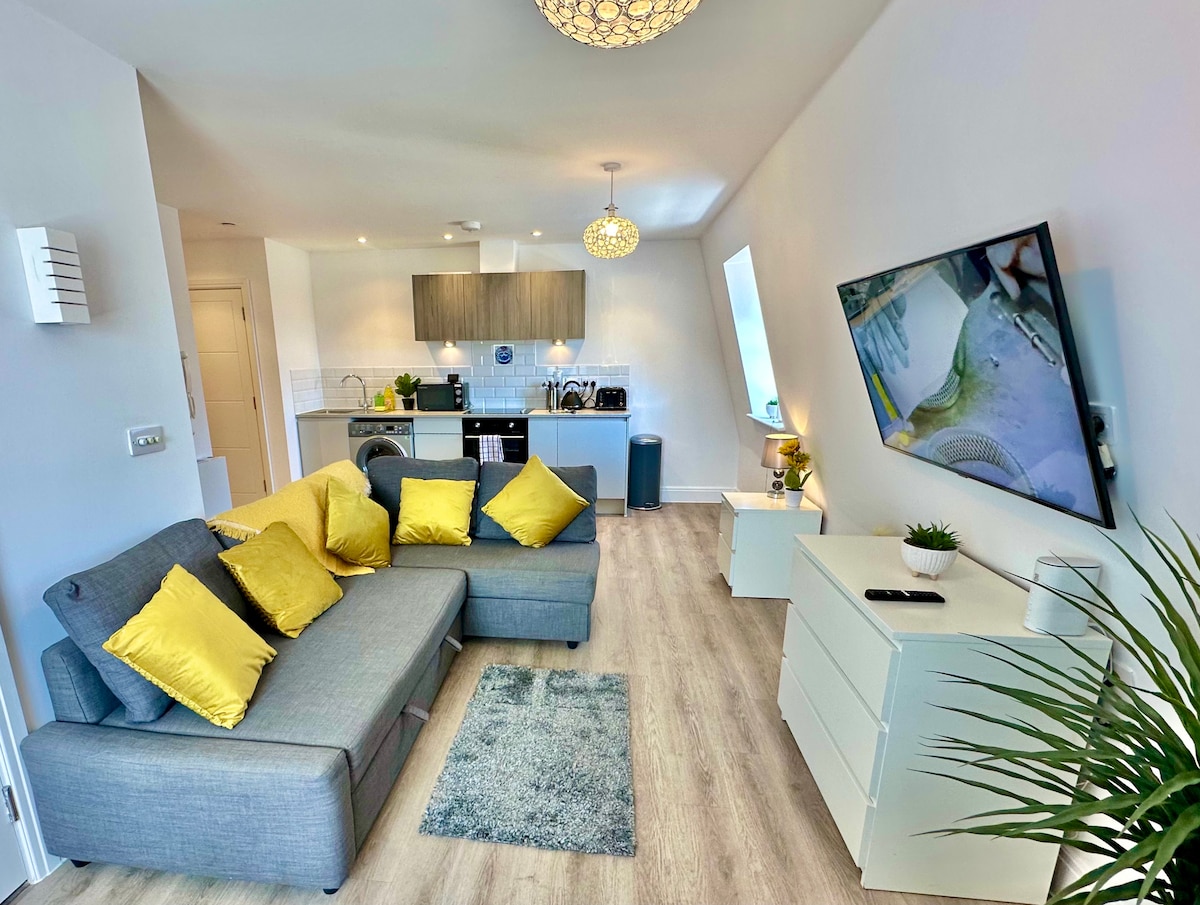 6 Gild House - 1 bedroom stylish apartment located within walking distance of bustling Bournemouth, charming Westbourne and Blue Flag Beaches. Situated within a modern, newly renovated apartment building with secure entrance and dedicated off street parking. High spec appliances and a focus on showcasing local and eco-friendly amenities without compromising luxury stays! A romantic coastal getaway, a weekend with friends or a couple of nights of solitude? Gild House is waiting for you!