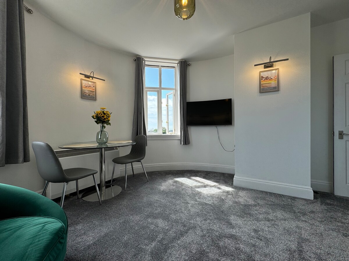 Modern third floor apartment with stunning sea views, recently fully refurbished. The property is in the perfect location for holiday makers. A short 5 minute walk to Boscombe Pier which boasts 8 miles of award winning golden sandy beach, and is 1.5 miles from Bournemouth Pier and town centre. Boscombe promenade has much to offer our guests from water-sports to exceptional hospitality, and is the perfect choice for a staycation or a business trip. Insta: the_turret_apartment
