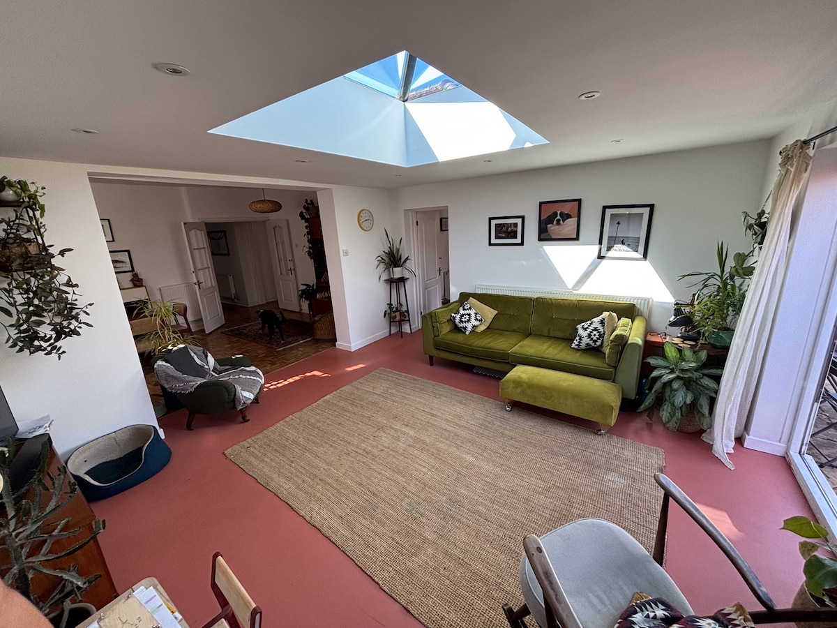 Relax with family and friends in this recently converted bungalow, perfectly located in a peaceful spot just a short walk from Southbourne Beach and Hengistbury Head. The property offers 4–5 bedrooms and can comfortably sleep up to 10 guests. We can adapt the setup depending on your group size. Sleeping arrangements include: • 1 spacious super king bedroom • 1 king-size bedroom • 2 double sofa-bed bedrooms • 1 bunk bedroom • Additional single floor mattresses available if required