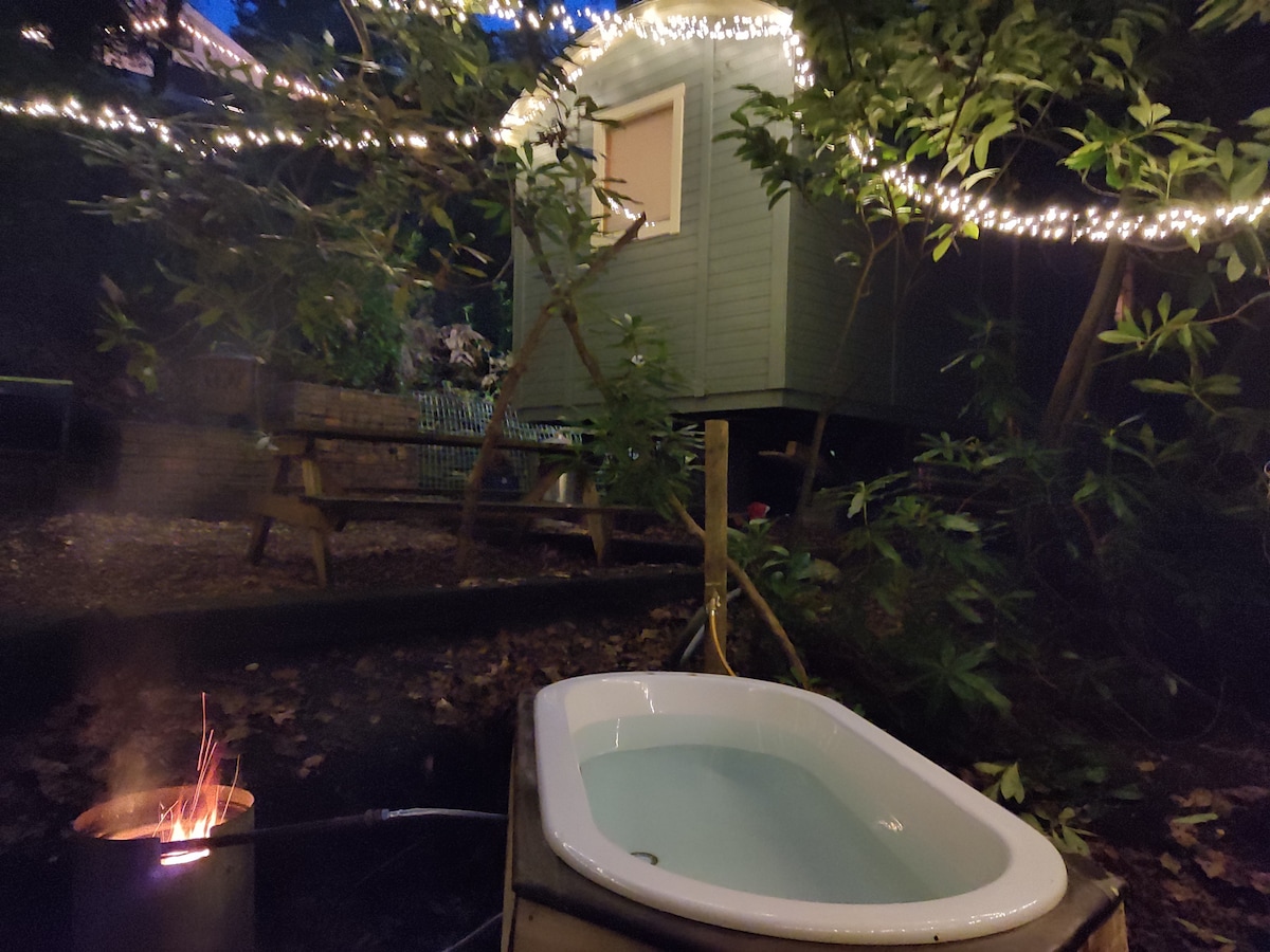 舒适牧羊人小屋,带木柴热水浴缸