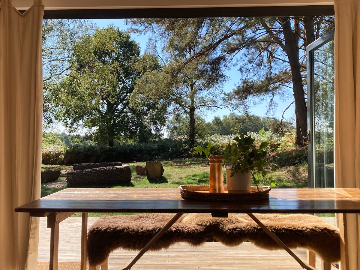 Arrive at the end of your mile long driveway to an oasis of calm. Switch off your phones, turn off devices and unplug while you relax in this contemporary little log house, away from the outside world. Situated in the tranquil New Forest countryside with direct access to explore the New Forest terrain and neighbouring Jurassic Coast and beaches. Designed, built and managed using eco-sensitive practices Penny Bun allows you space and time to relax and take a break from the strains of life.