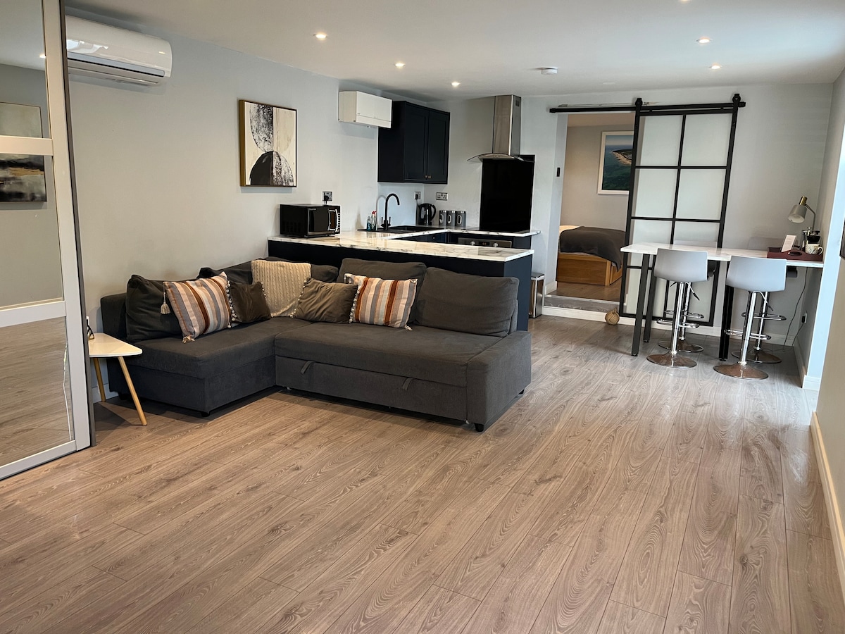 This modern property is 200 metres from award winning beaches, offering luxurious accommodation with modern amenities. It is ideal for couples. Independent air conditioning in bedroom and lounge. Smart lighting, Smart TV, fast free WiFi. Walking distance to the stunning beaches, local shops, restaurants and bars in Southbourne. 5 min drive from Bournemouth University, 10 min drive from Bournemouth town centre and a 15 min walk from AFCB football stadium. Secure free, off-road parking.