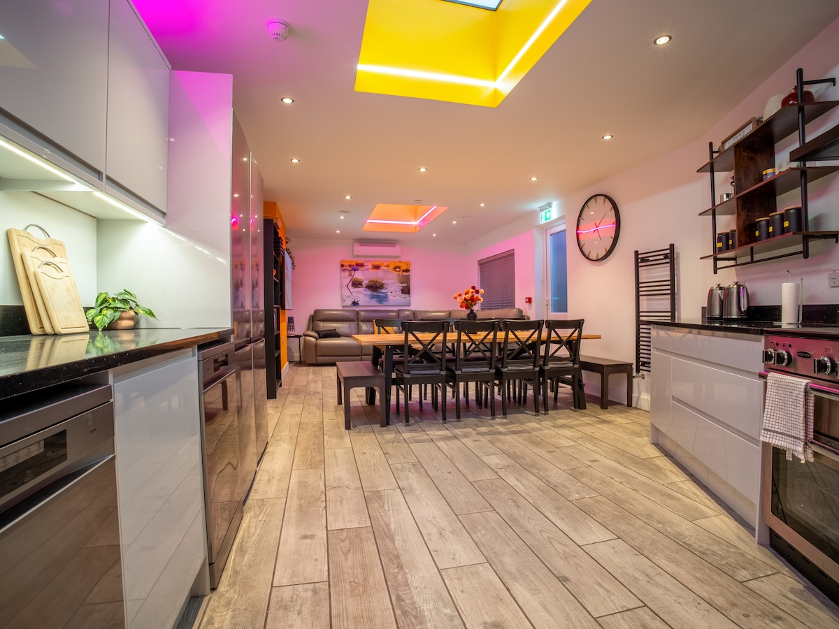 Luxury 3-Bedroom Townhouse near the beach. Experience comfort, style, and convenience in this spacious home just a 5-minute walk from Bournemouth’s stunning cliff tops and beaches. Perfect for larger groups, families, or remote workers. Highlights: 5 minutes to the beach, 10 minutes to Bournemouth town center. Work-ready: 2 adjustable desks, monitors, and office chairs. Three large comfortable bedrooms. Relax in the modern living space, cook in the fully equipped kitchen.