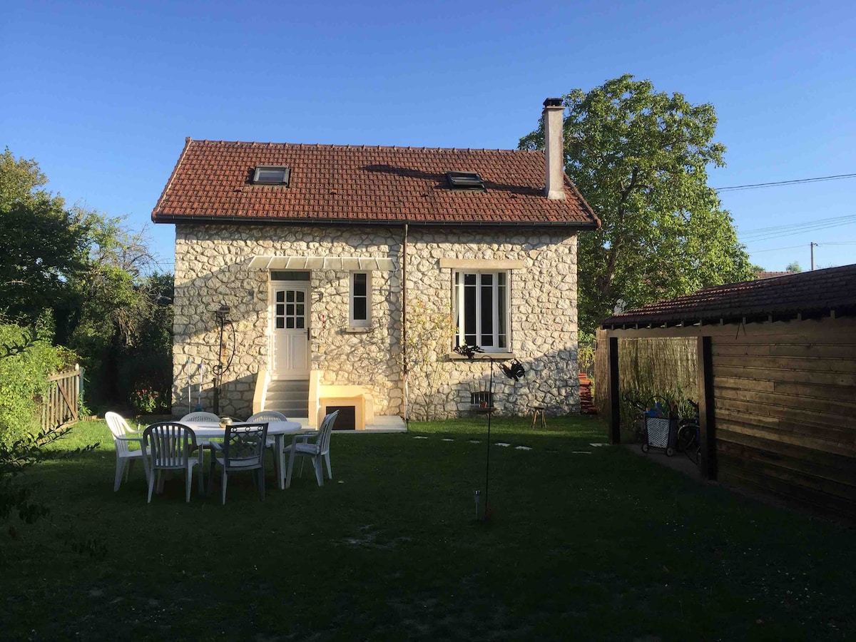 Our recently fully renovated cottage is set in the middle of a large garden on the edge of the pretty village of Montigny sur Loing. A peaceful rural hideaway on the edge of the 25000 hectare Fontainebleau forest famous for its boulders. Shops 5 min. walk. The train station with direct trains to Paris Gare de Lyon every hour is a 10 min. walk away. 2.50€ a ride. Free parking at station. 55 min. train ride to the heart of Paris.