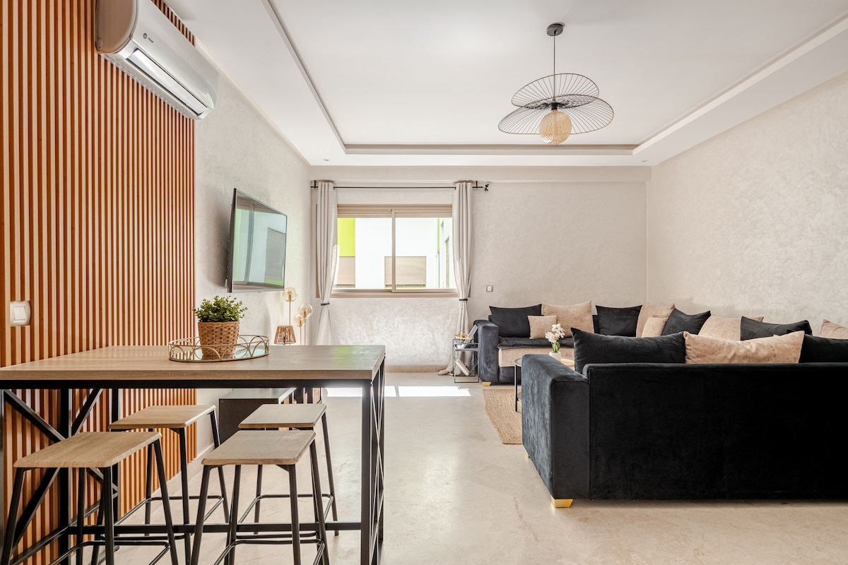 Découvrez notre magnifique appartement lumineux à 3 minutes seulement de la plage dahomy et 8 minutes de plage bouznika 🌞🌊 Plongez dans une ambiance élégante avec une décoration soignée et un mobilier moderne 🛋️,profitez de la terrasse ensoleillée pour vos moments de détente ou un café matinal ☕️🌿 Ce lieu est parfait pour vos escapades au soleil, 🏆 Récompensé par le Traveller Review Awards 2026 (Booking) grâce aux excellents avis de nos voyageurs.🥳🤩