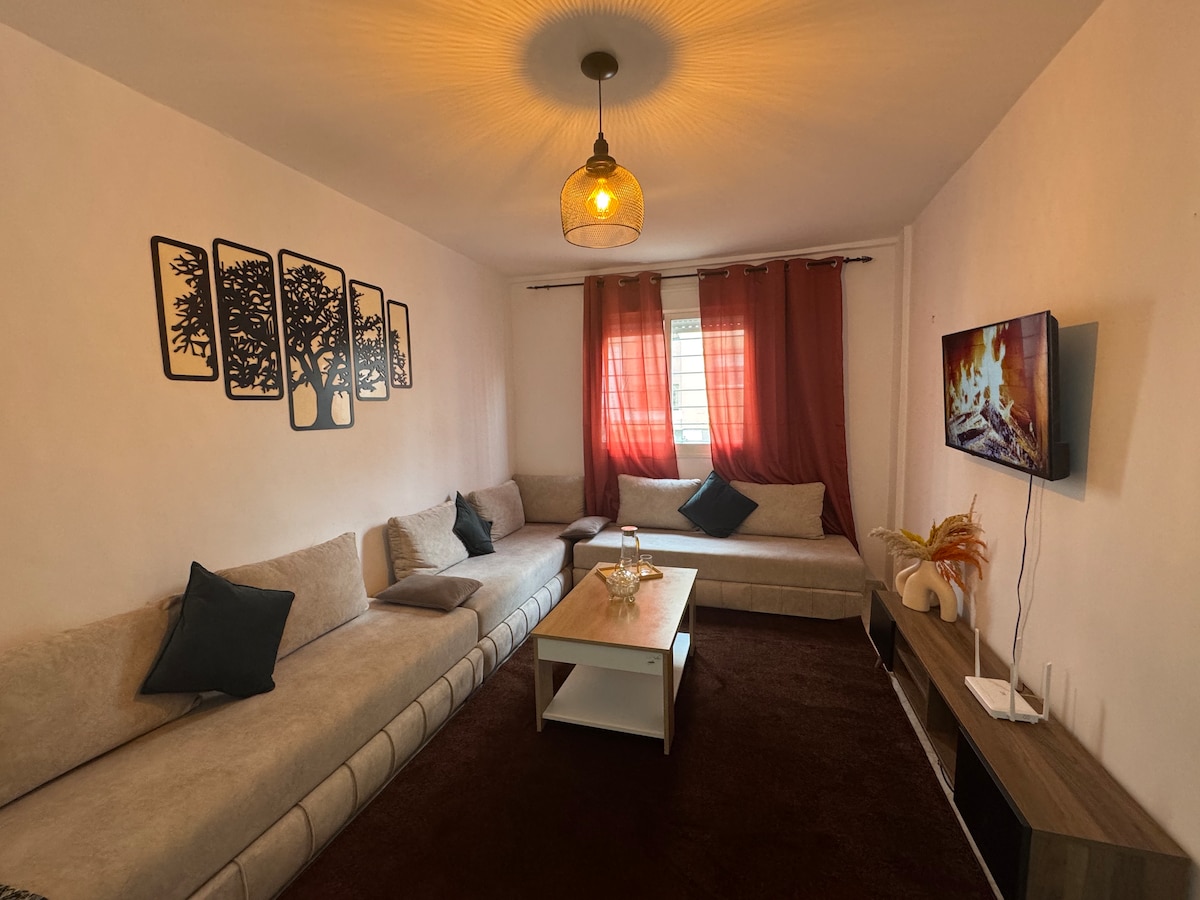 Bienvenue à Skhirat : 8 min plage 🚗, 30 min Rabat, 25 min stade Moulay Abdellah (Coupe d’Afrique) et 1h Casablanca. Quartier calme et populaire. Voiture indispensable (ou InDrive 24h/24). Appartement lumineux de 65 m² : 2 chambres confortables, cuisine équipée, petit balcon, salon avec TV. Idéal familles/amis pour séjour paisible entre océan et capitale. Proche centre équestre, spot de surf et grand centre commercial. Conciergerie sur demande à l’hôte local (navette, petit-déj, conseils).