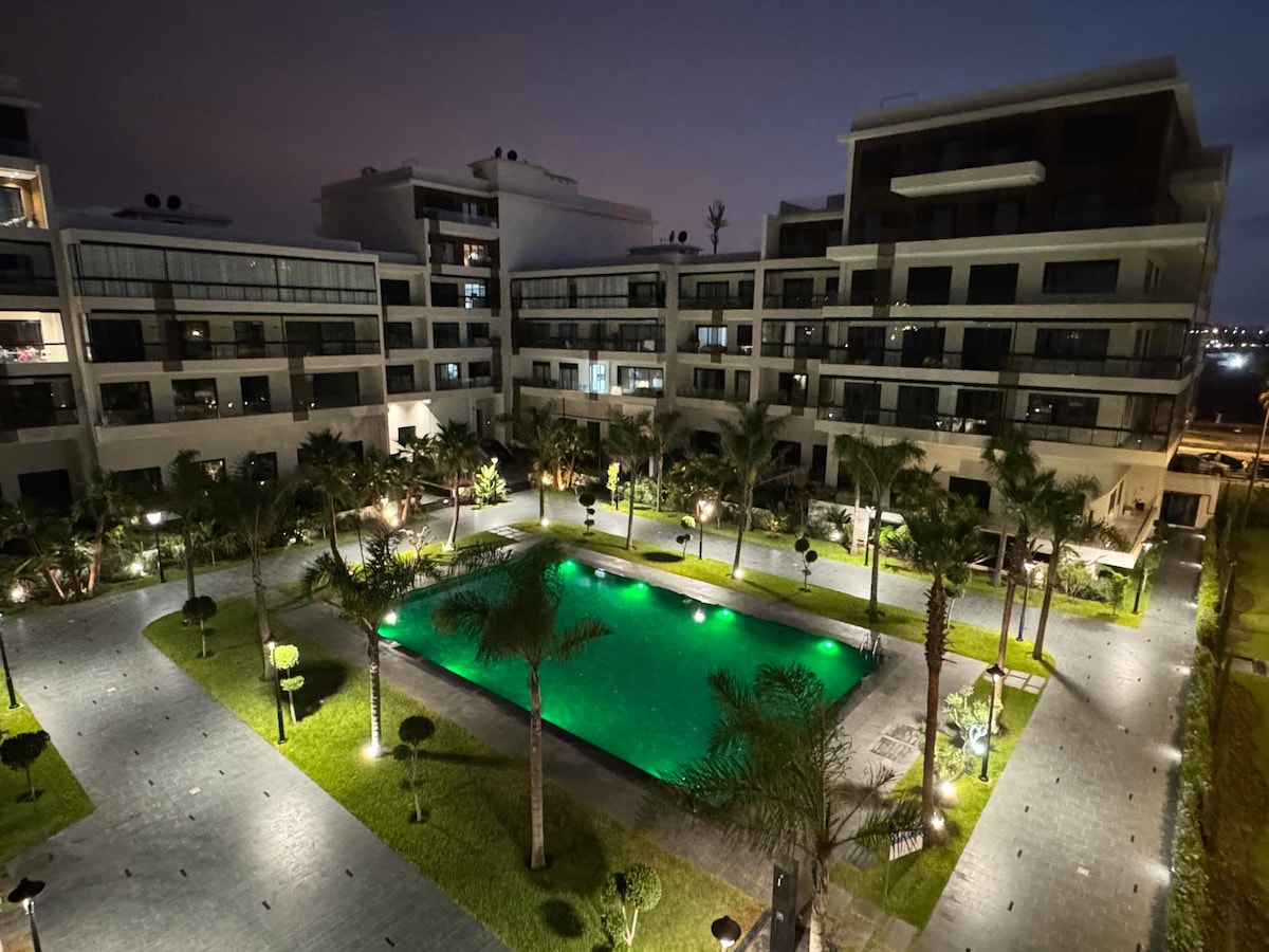☀️ Seaside Escape in Bouznika! Luxury 2-bedroom, 2-bathroom apartment at Évasion Bouznika — perfect for families, couples, or friends. Enjoy: 🌊 Sea view & quick walk to the beach 🏊 Direct pool access from your private terrace 🛏️ 2 bedrooms + bright living room 🛁 2 full bathrooms for extra comfort 🍽️ Fully equipped kitchen, WiFi, free parking Located in a calm, secure residence with 24/7 security. ✨ Comfort, sunshine & relaxation guaranteed!