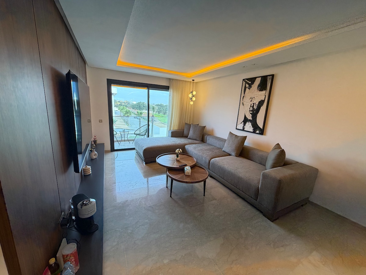 Charming apartment in Bouznika, just 5 minutes from Kasbah Beach and the golf course. Perfectly located between Rabat and Casablanca Close to restaurants, cafés, shops, and sports fields. Wi-Fi,/ Receiver with beIN Sports subscription and many prepaid international channels /hot water,/ equipped kitchen, and a quiet, safe Whether you are a couple, a family, or friends, this is the perfect place to combine relaxing on the beach with activities like jet skiing and surfing.