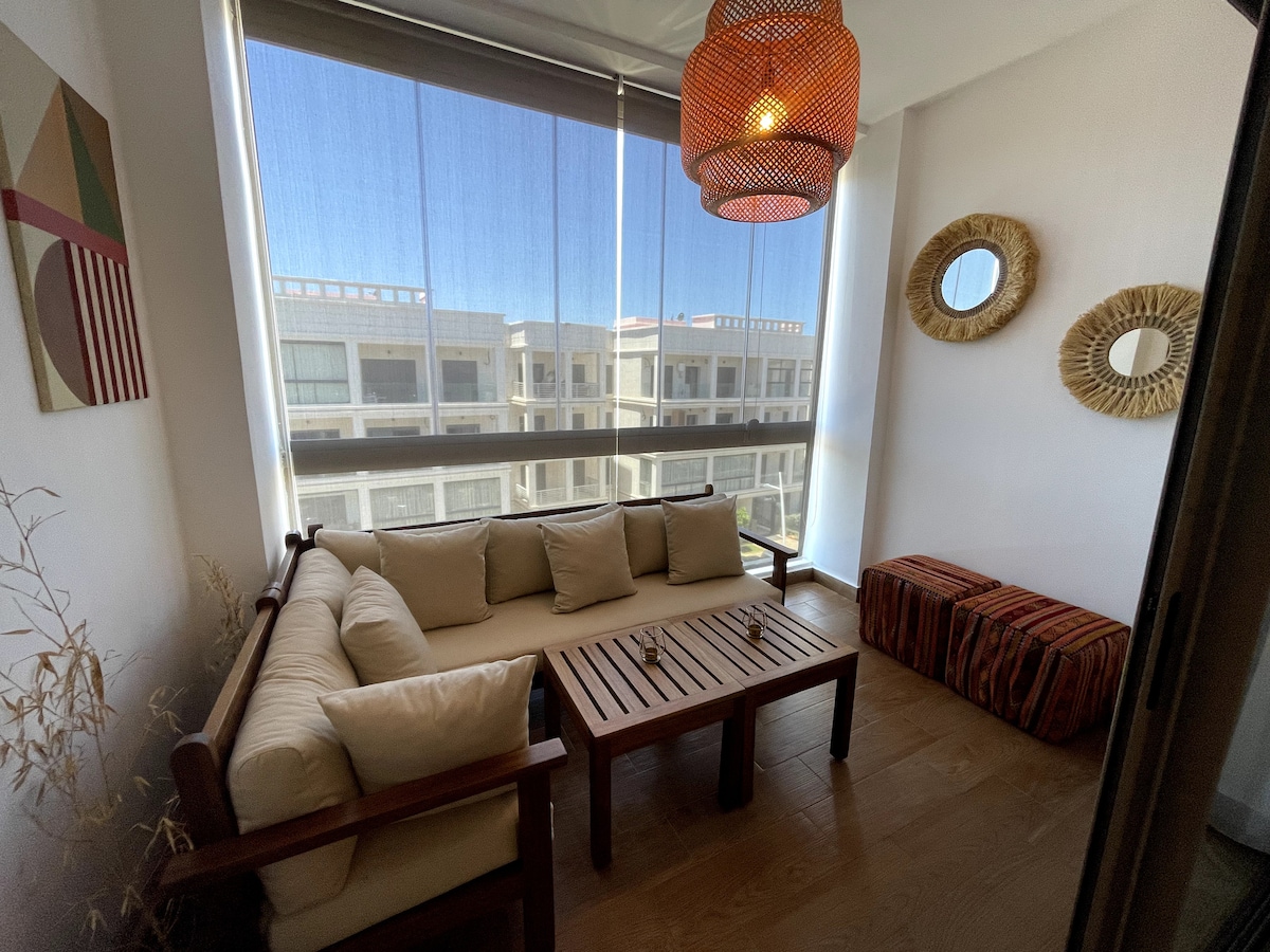 Située en face du nouveau « Mall du carrousel », Profitez d'un logement élégant et unique dans la prestigieuse résidence ‘Le phare du carrousel’ en bord de mer au cœur de Rabat. Elle est dotée d’une salle de fitness,terrain de foot, espace de sport extérieur, espace de jeux pour enfant et une piscine. L’appartement se distingue avec sa belle vue sur mer et sur piscine à partir de sa terrasse et son jardin privatif. Un petit havre de paix luxueux, meublé et décoré par Inn design studio.