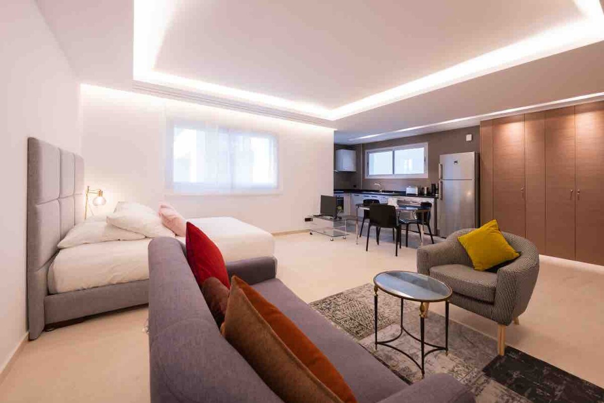 Grand studio ultra moderne au cœur de la capital. Composé d'un salon, chambre à coucher, terrasse et cuisine américaine. Idéalement situé à l'agdal à quelques minutes à pieds de toute commodités (restaurants, centre commercial, transport) dans un immeuble authentique du quartier. L'appartement a été refait à neuf disposant de tout ce dont vous aurez besoin (wifi, TV, clim, parking sous terrain gratuit) . Nous proposons un service de navette payant pour l'aéroport (Rabat 250dh, Casablanca 750dh)
